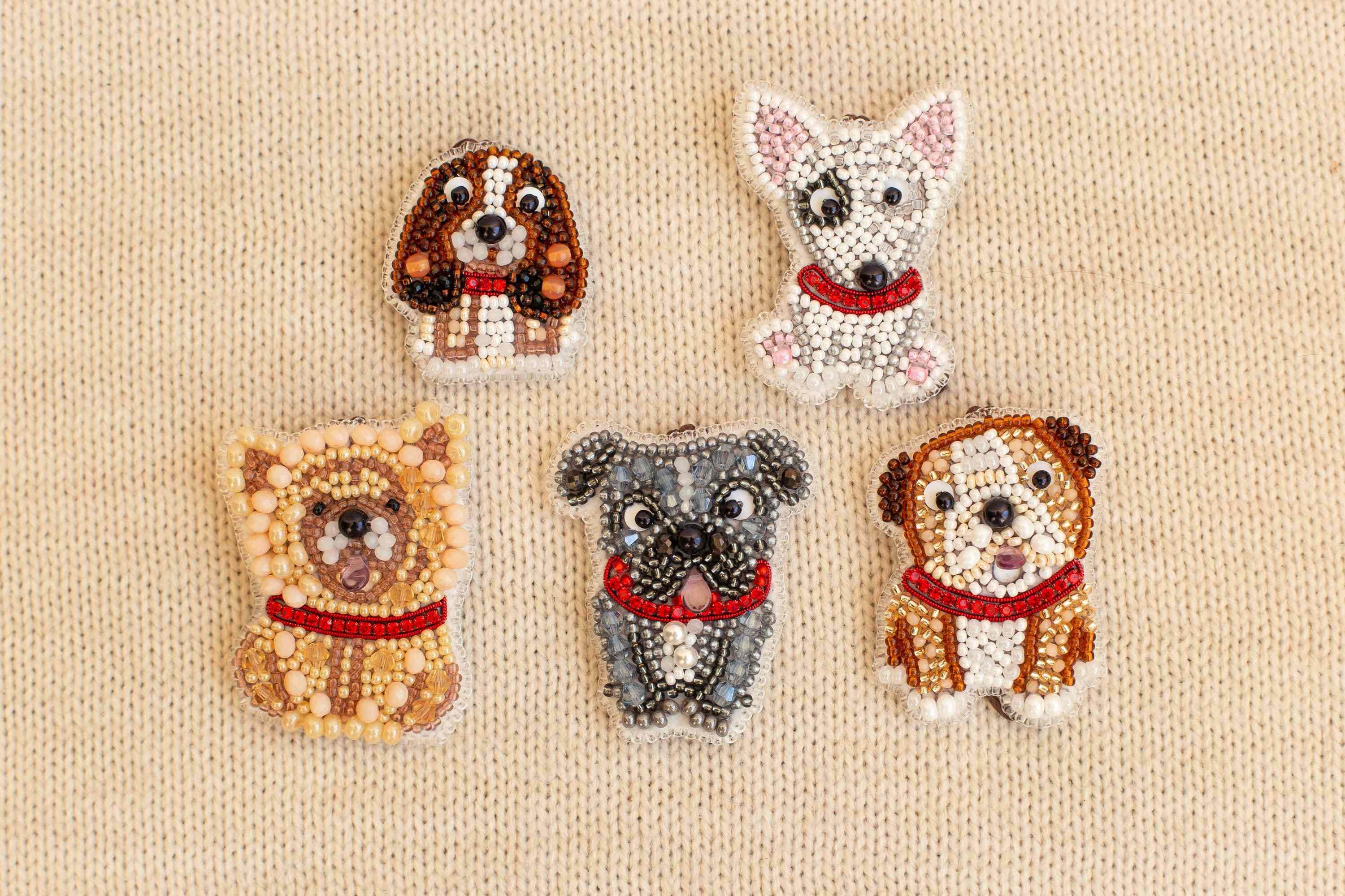 Set of 5 Dogs DIY Beaded Brooches Kits