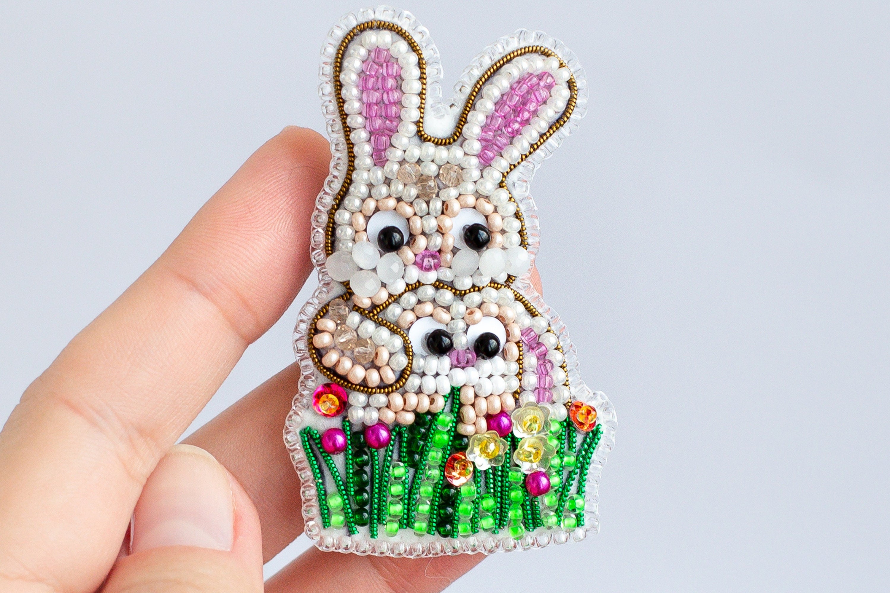 Easter Bunny with Egg Brooch Beading DIY Kit