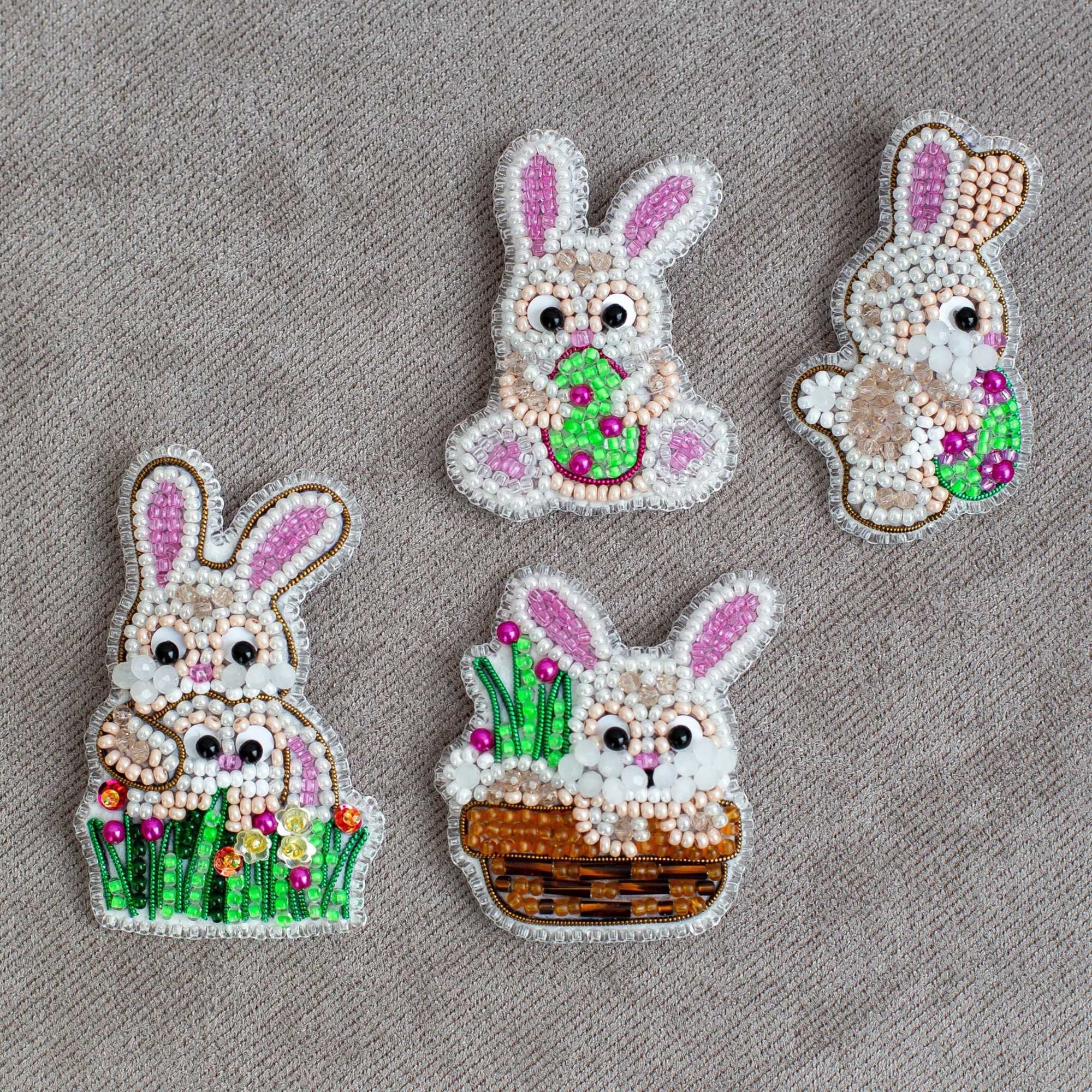Set of 4 Easter Bunny Brooch Beading DIY Kit