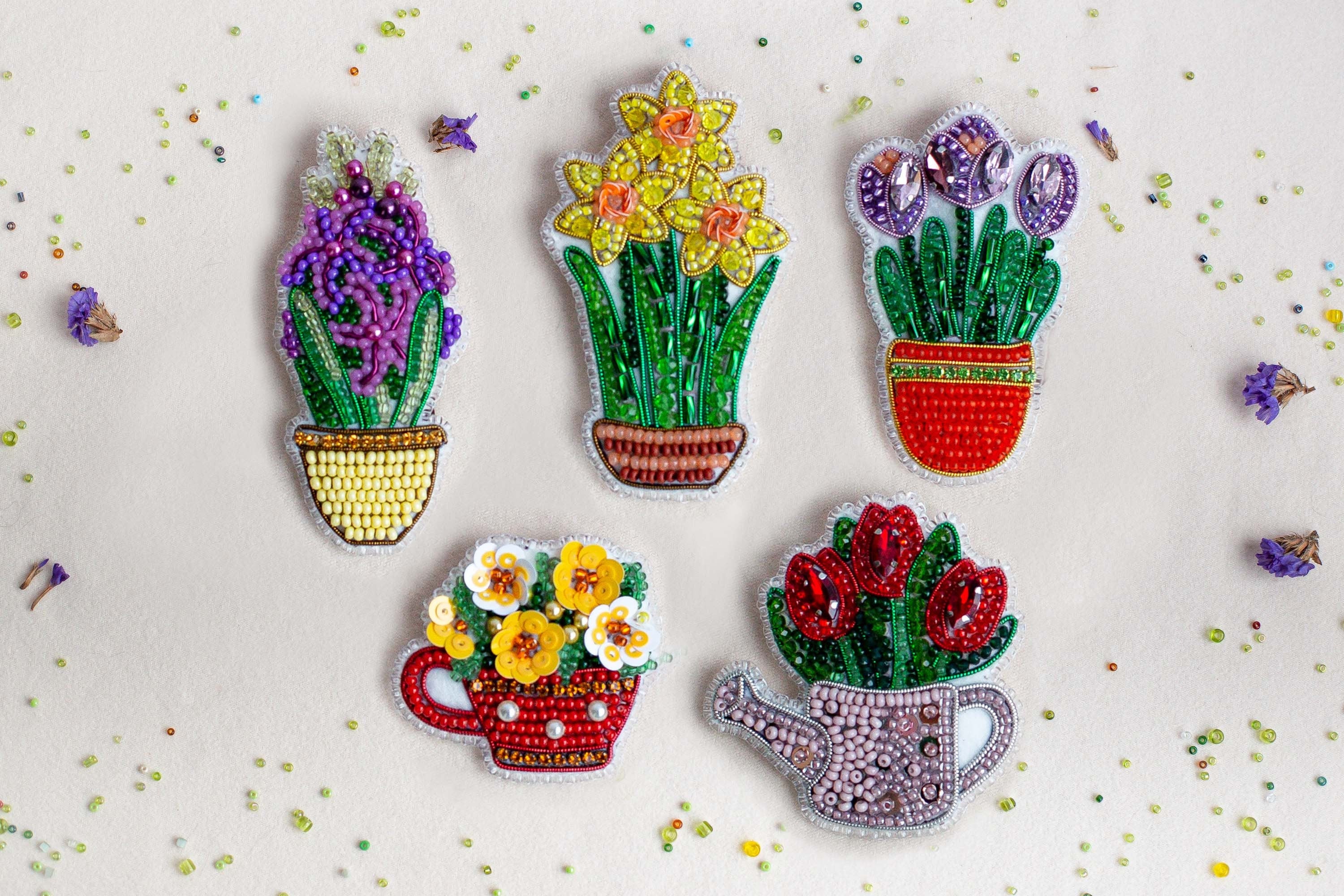 Set of 5 Spring Flowers Brooch Beading DIY Kit