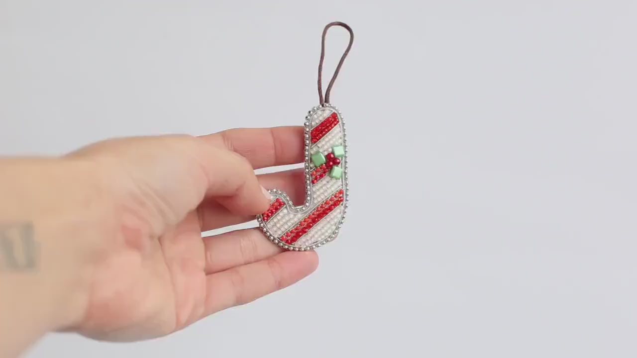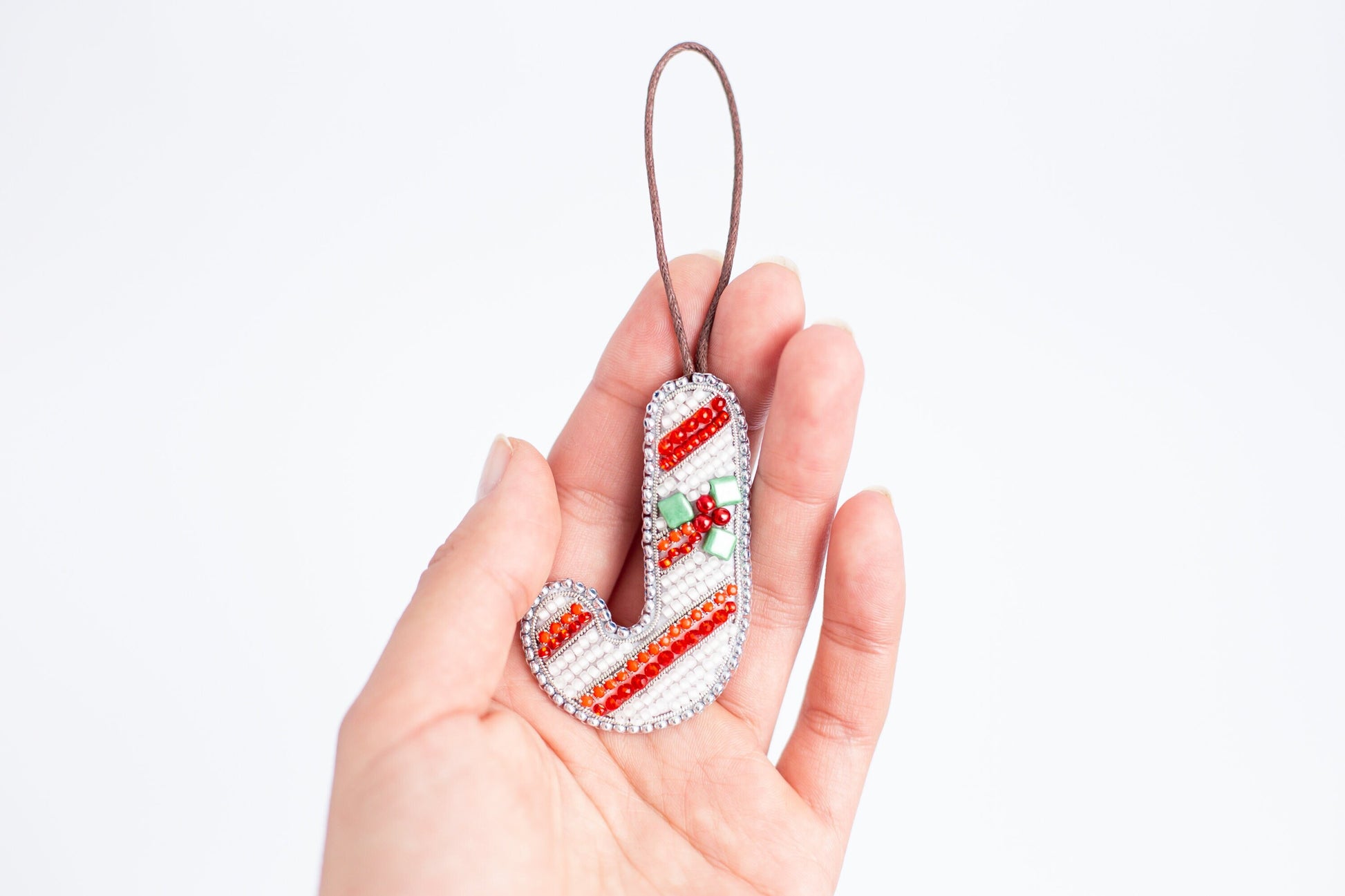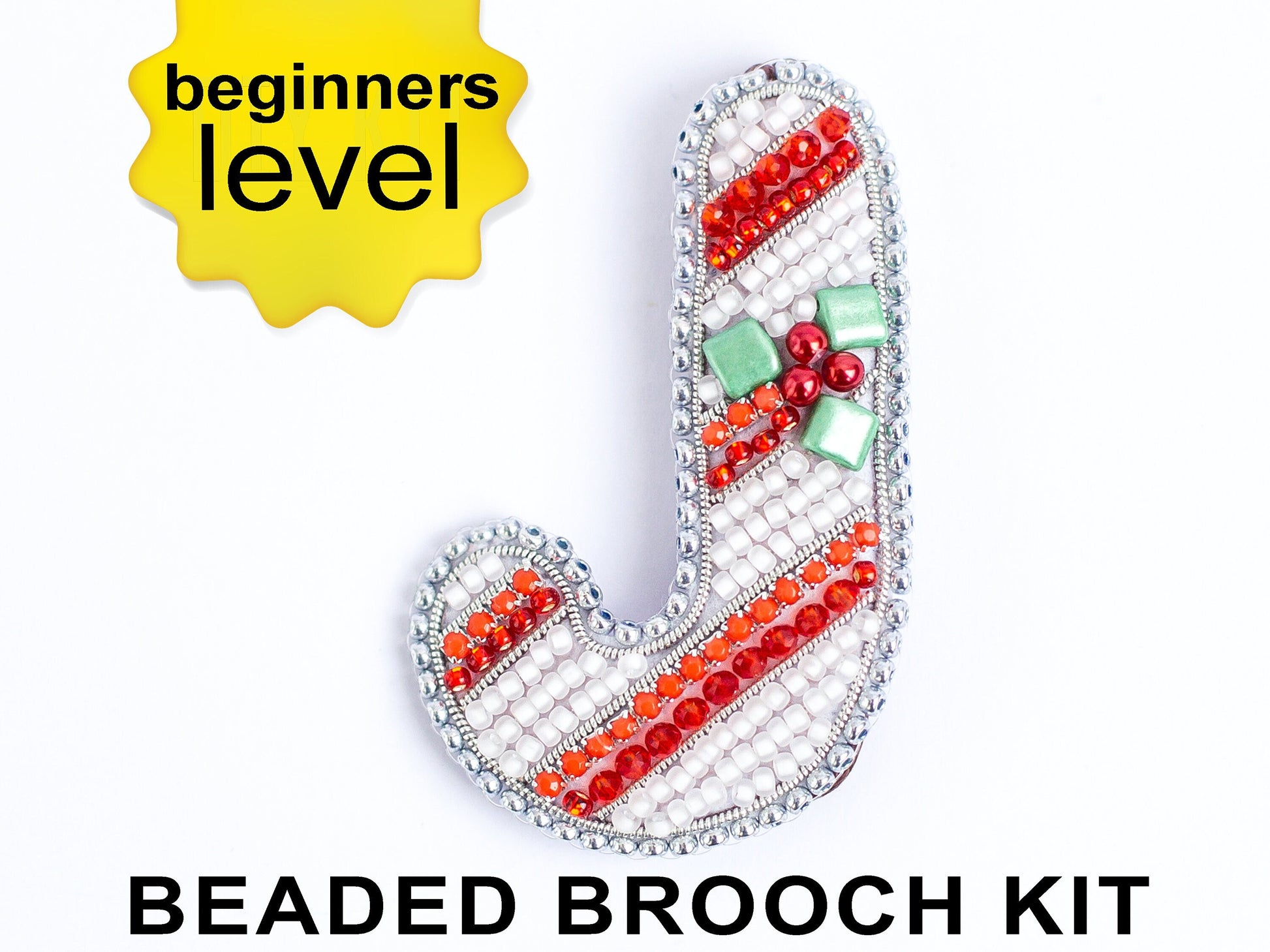 Bead Embroidery Kit Candy Cane. Seed Bead Brooch kit. DIY Craft kit. Xmas Beading Kit. Needlework beading. Handmade Jewelry Making Kit