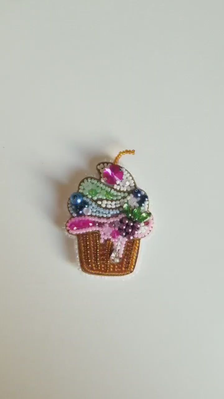 Bead Embroidery Kit Cherry Muffin. Seed Bead Brooch kit. DIY Craft kit. Food Beading kit. Needlework beading. Handmade Jewelry Making Kit