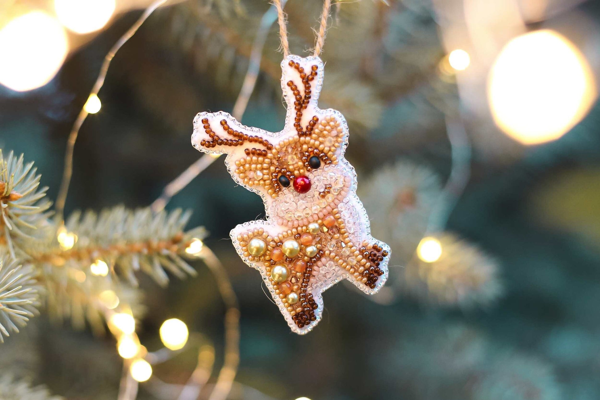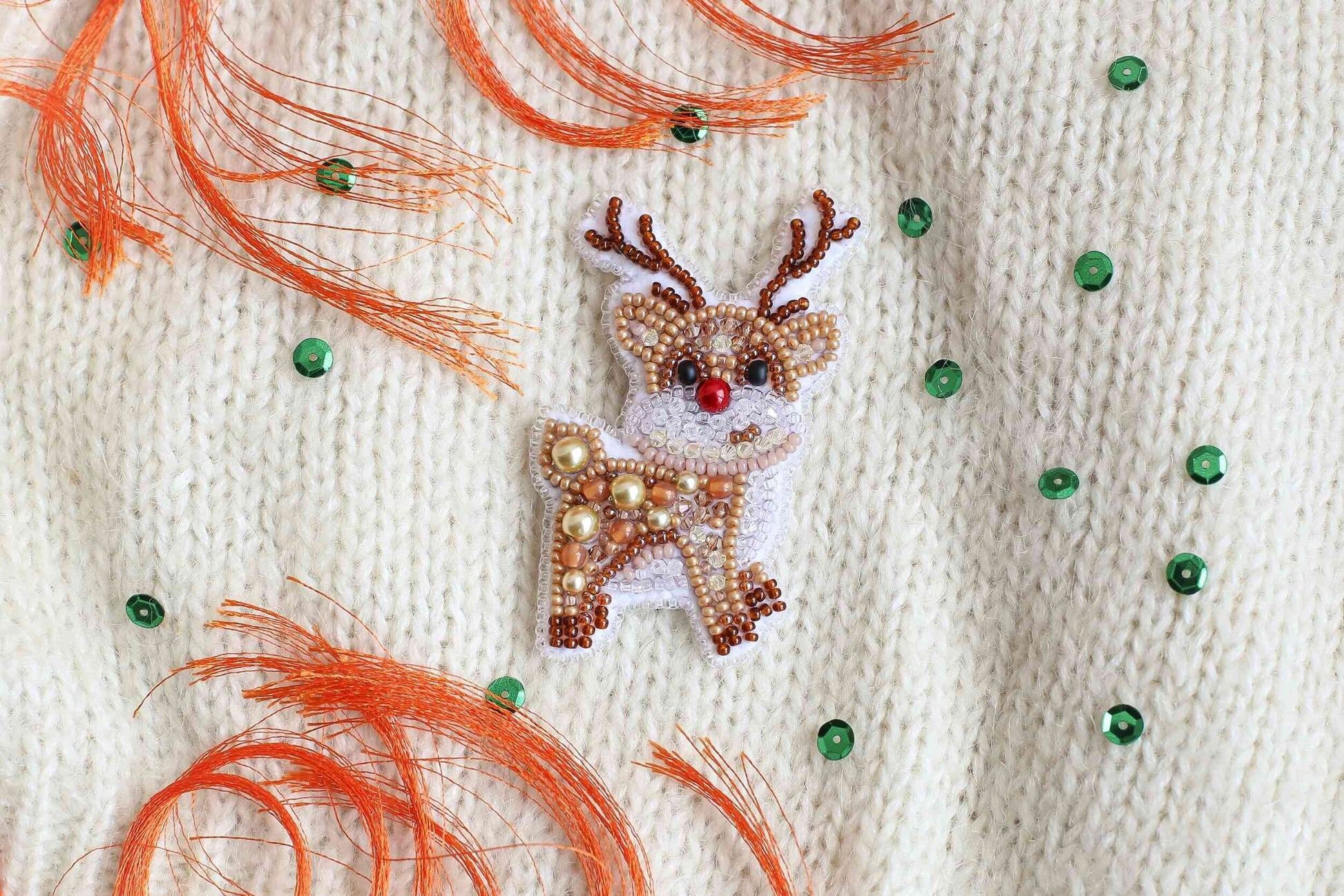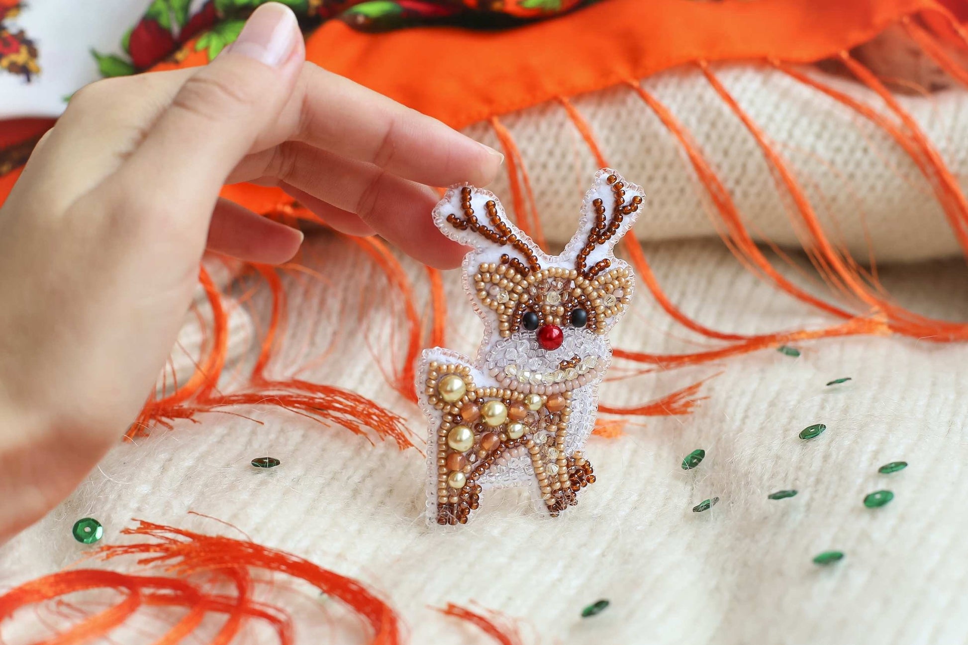 Check out this beadwork kit for creating a lovely Xmas broоch. A shiny reindeer will jazz up your dress, sweater, jacket collar, cardigan, or blouse. We have a wide choice of DIY jewelry-making sets for all lovers of handmade embroidered pieces. The kit includes all the necessary materials and instructions to create a sparkling seed beads pin.