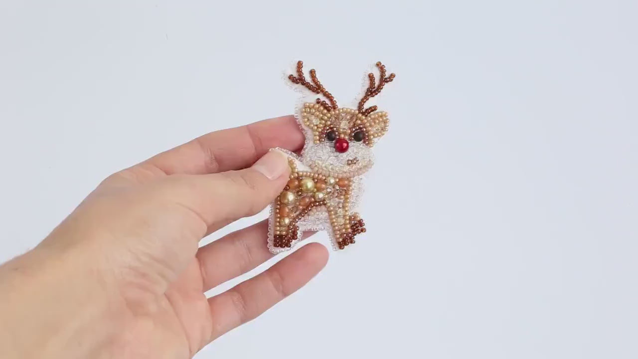 Bead Embroidery Kit Christmas Deer. Seed Bead Brooch kit. DIY Craft kit. Xmas Beading Kit. Needlework beading. Handmade Jewelry Making Kit