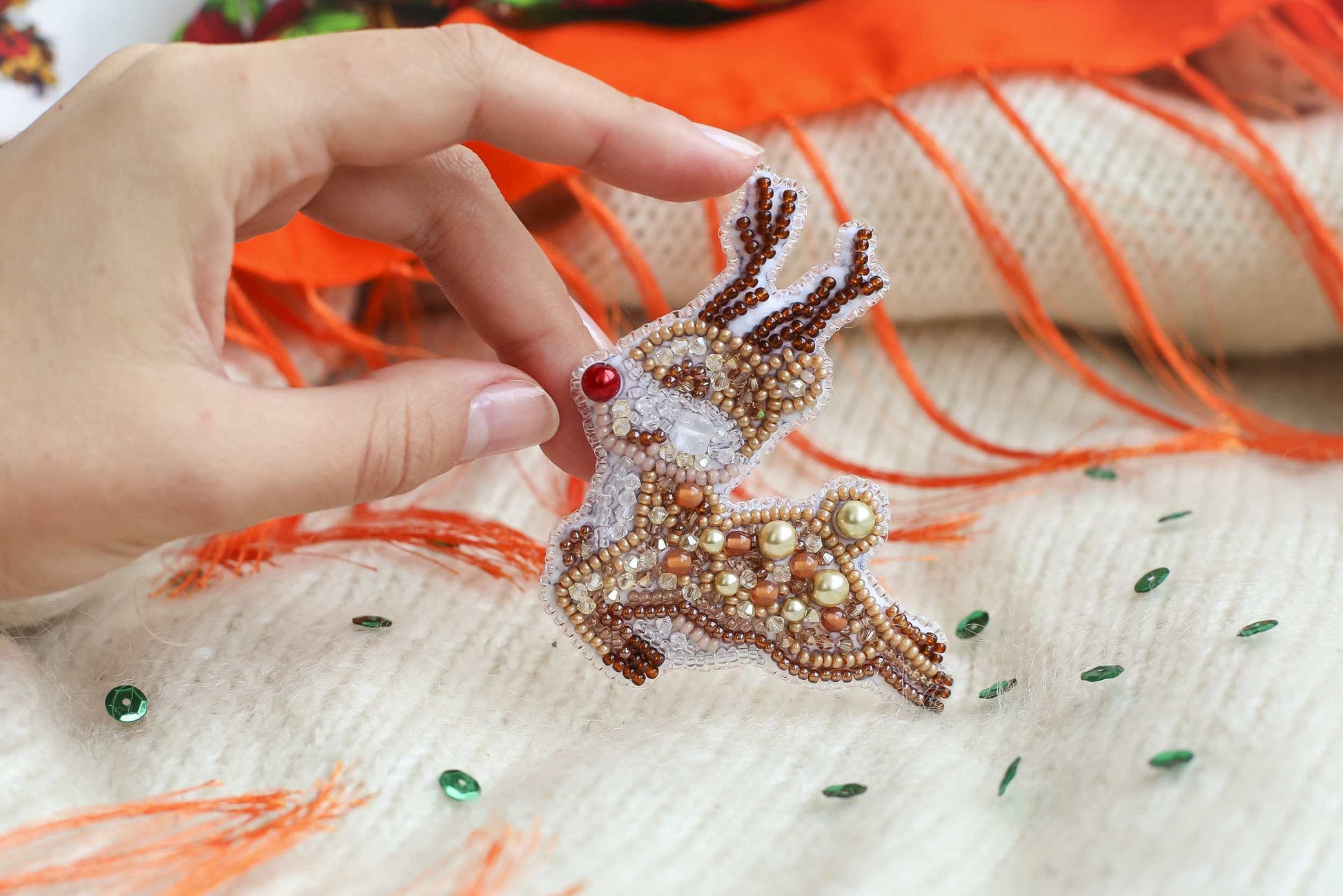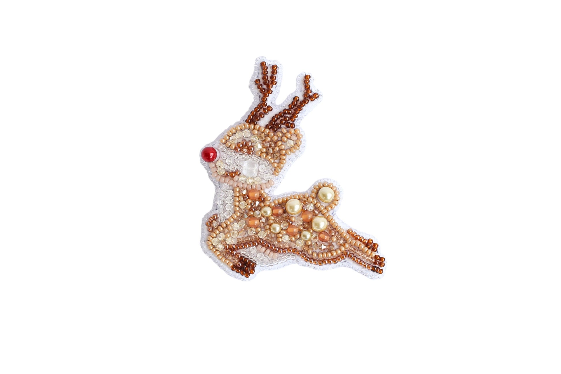 Check out this beadwork kit for creating a lovely Xmas broоch. A shiny reindeer will jazz up your dress, sweater, jacket collar, cardigan, or blouse. We have a wide choice of DIY jewelry-making sets for all lovers of handmade embroidered pieces. The kit includes all the necessary materials and instructions to create a sparkling seed beads pin.