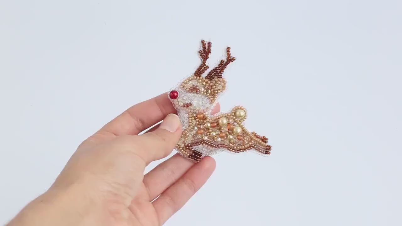 Bead Embroidery Kit Christmas Deer. Seed Bead Brooch kit. DIY Craft kit. Xmas Beading Kit. Needlework beading. Handmade Jewelry Making Kit