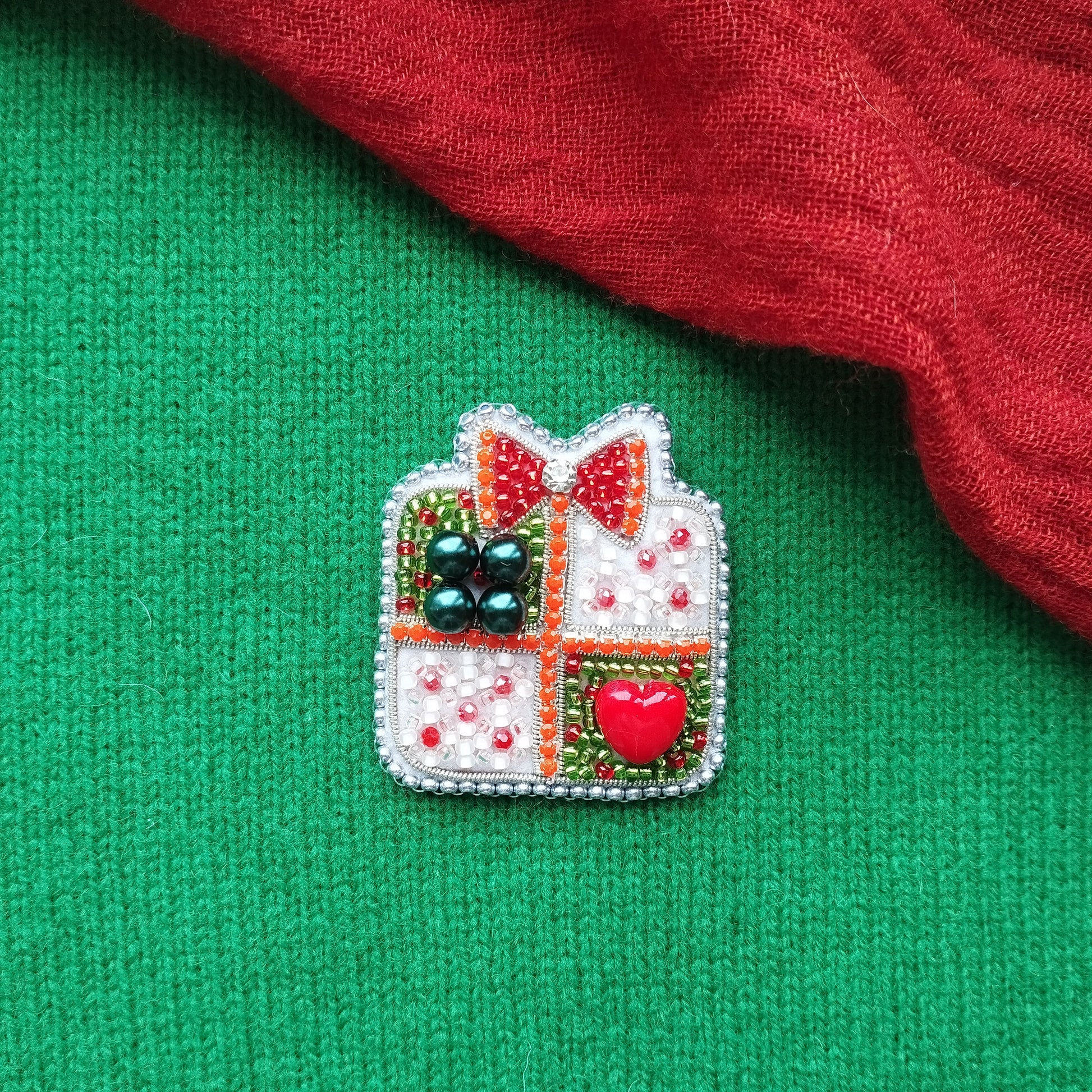 Winter is coming. Get ready for Christmas with this cute brooch representing a little gift. This stylish red present brooch made from crystals, rhinestones, and seed beads will complete your winter outfit or become a lovely little Xmas present to a person you love. And the best thing about such a seed-beaded brooch is that you can make it your own using our DIY kit. No matter how skilled in bead embroidery you are. Our jewelry-making kit is designed for adults and kids of any skill level. It includes a beadwork pattern, detailed instructions, and all the necessary materials.