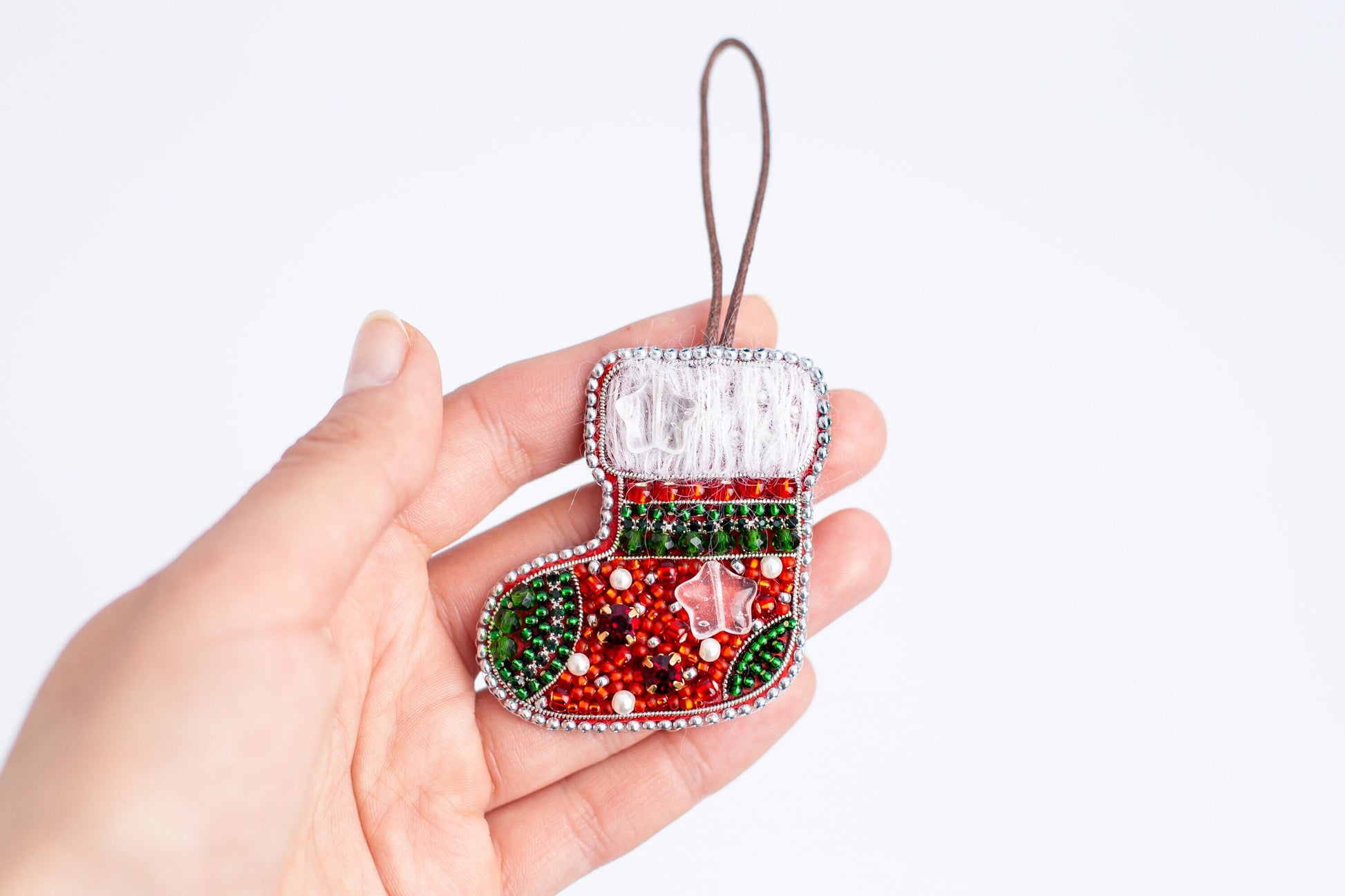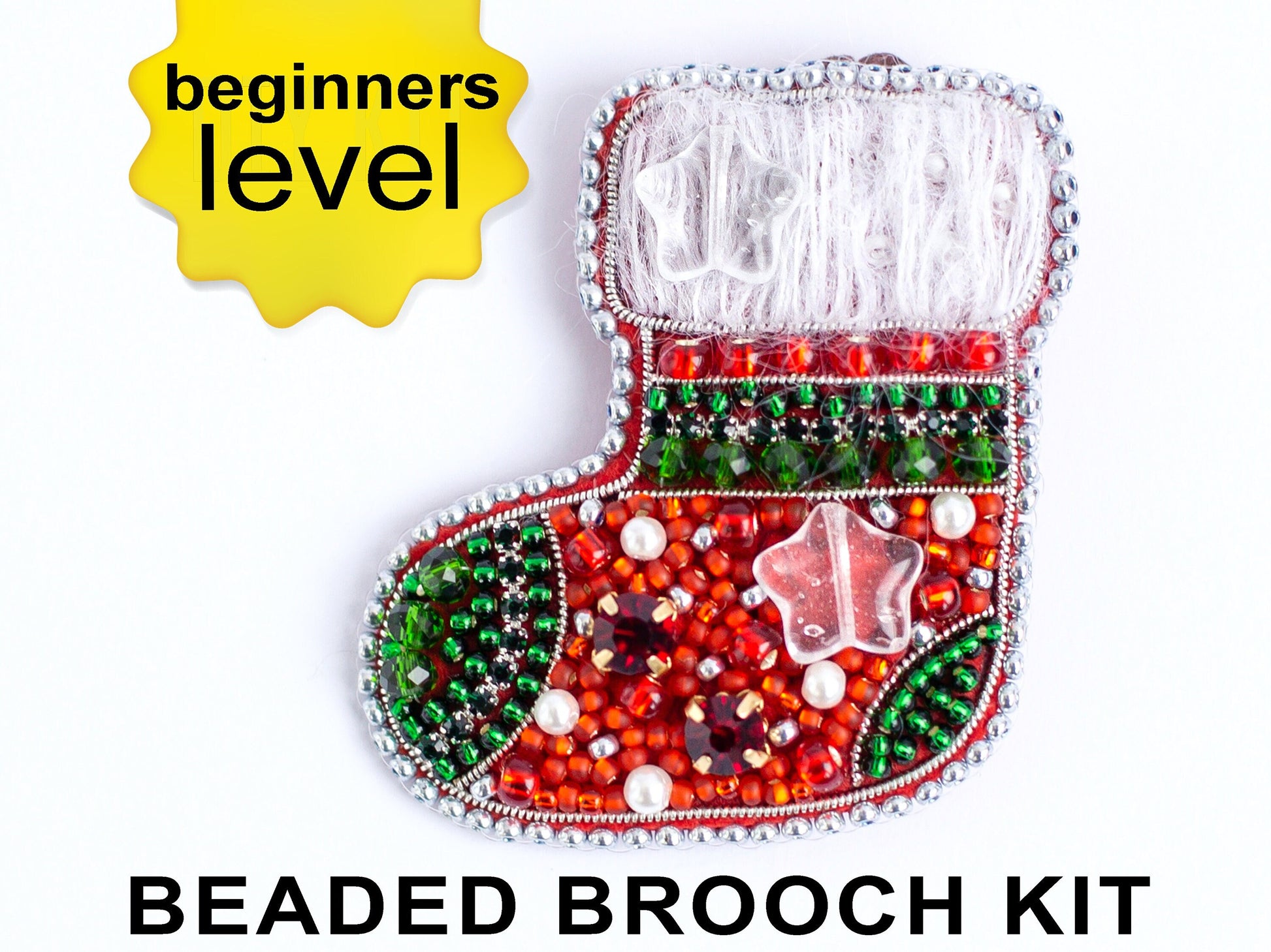 Bead Embroidery Kit Christmas Stocking. Seed Bead Brooch kit. DIY Craft kit. Beading kit. Needlework beading. Handmade Jewelry Making Kit
