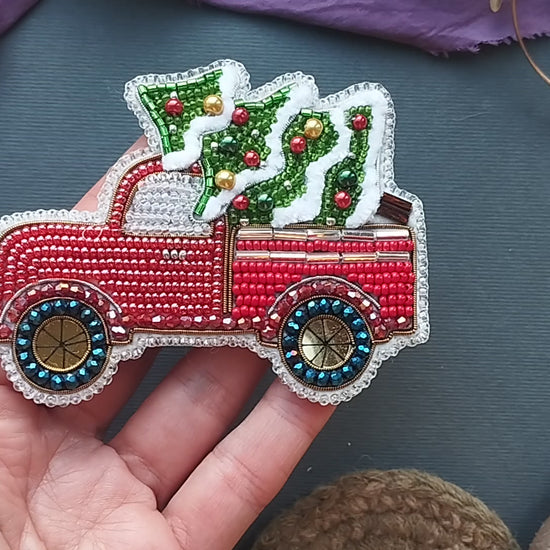 Get into the holiday spirit with our Christmas Truck with Tree beaded embroidery kit! This charming and festive brooch is the perfect accessory to celebrate the season. Whether you're looking for a delightful holiday gift, a creative project for yourself, or an activity to enjoy with loved ones, this kit has you covered.