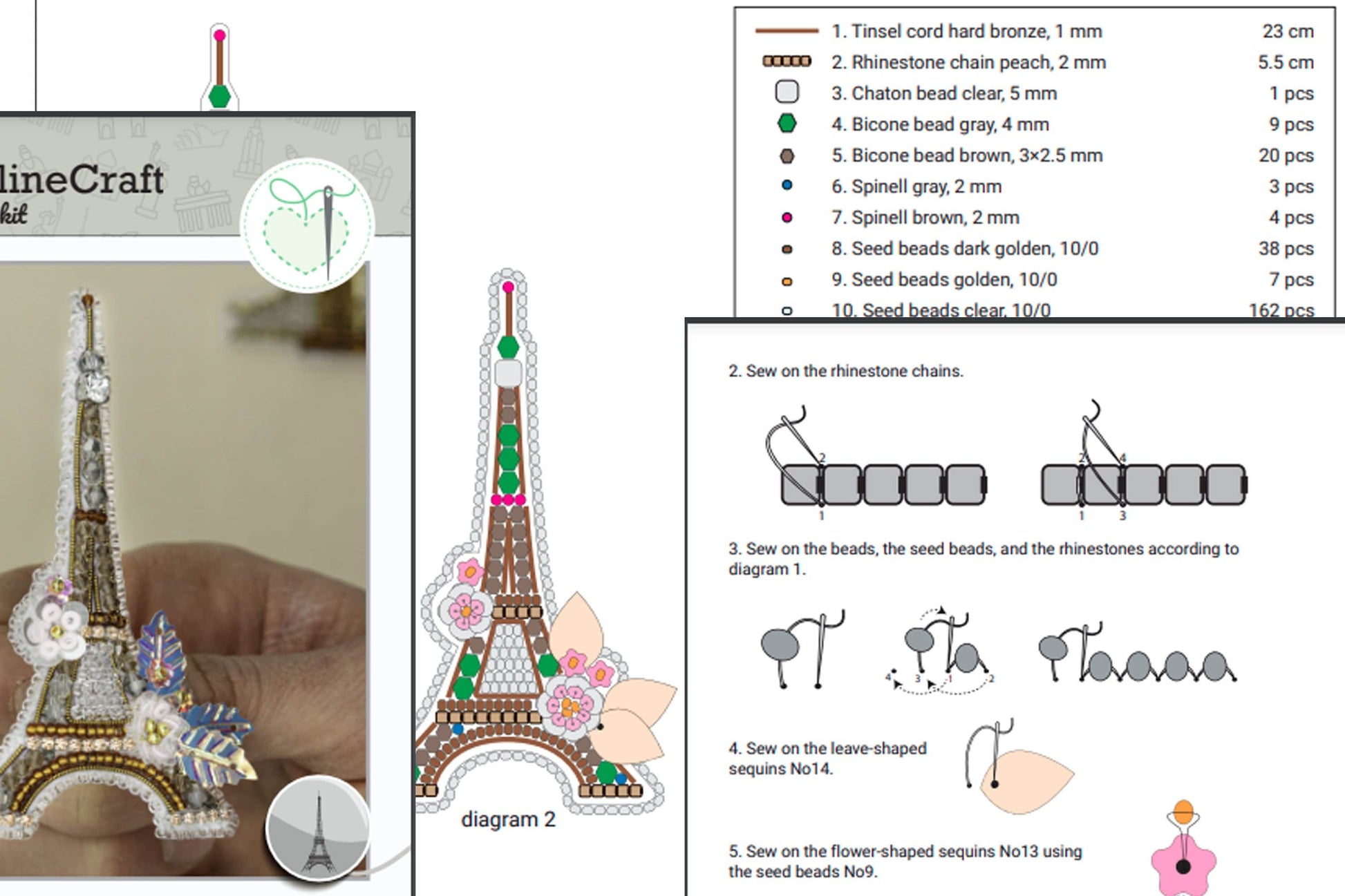 Create a stunning Eiffel Tower brooch or pendant with our thoughtfully designed bead embroidery kit. This beginner beadwork kit will help you to craft the most romantic and captivating symbol of Paris – seed beaded Eiffel tower brooch that you can wear yourself or present as a beautiful handmade gift from France for your friends or family! Whether you're a seasoned crafter or just starting, our beginner beading kit offers a delightful and rewarding experience. The detailed pattern and high-quality materials ensure that your finished accessory radiates elegance and charm.