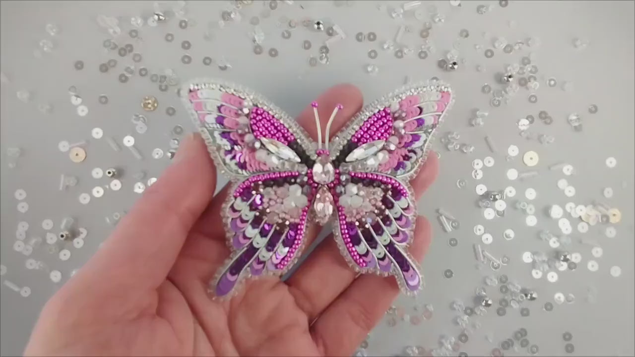 ✔ pink butterfly kit, bead embroidery kit, handmade brooch diy, needlework beading, crystal brooch craft, diy gift for her, beginner jewelry kit, beading kit, craft kit for women, diy accessory gift, butterfly beading, beadwork embroidery, gift idea brooch