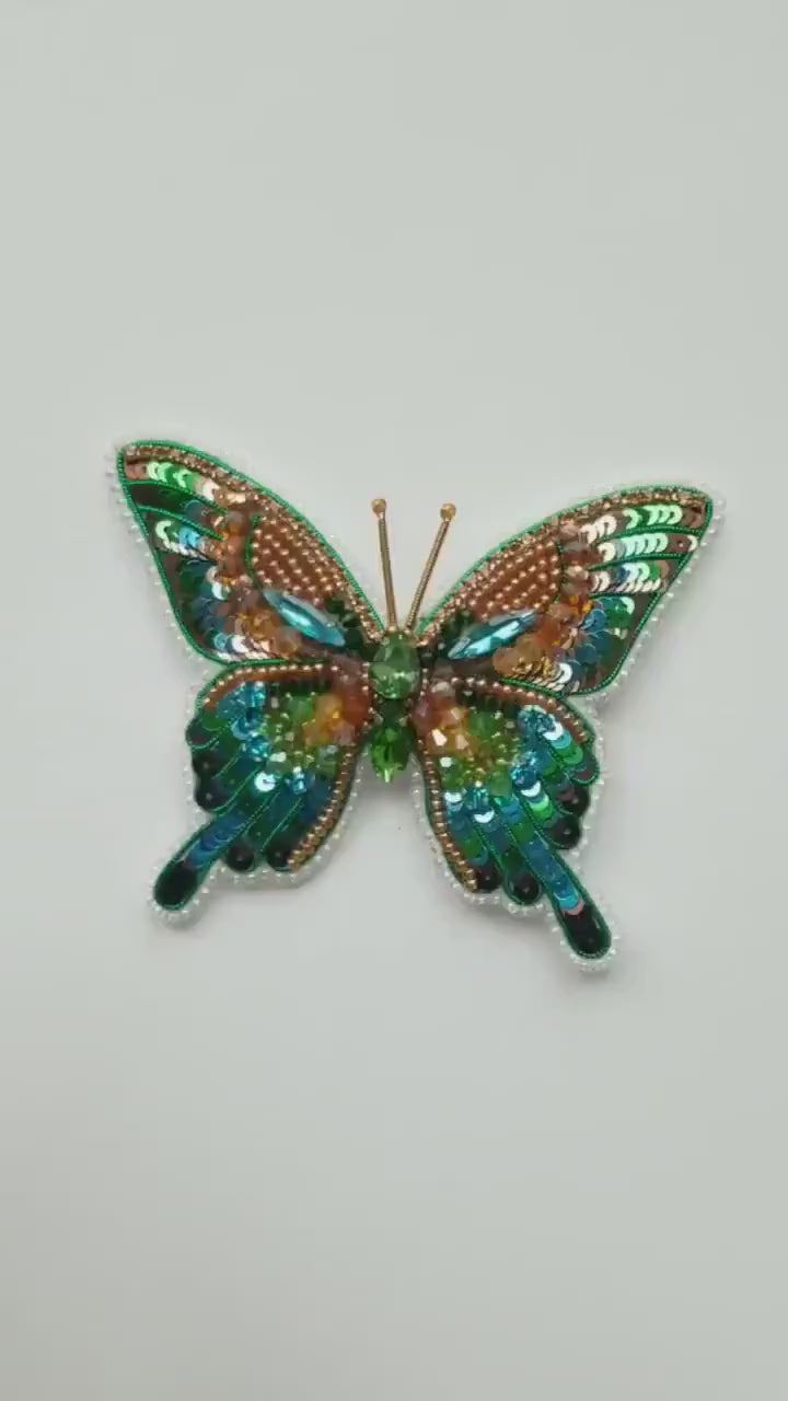 Bead Embroidery Kit Green Butterfly. Seed Bead Brooch kit. DIY Craft kit. Insect Beading kit. Needlework beading Handmade Jewelry Making Kit