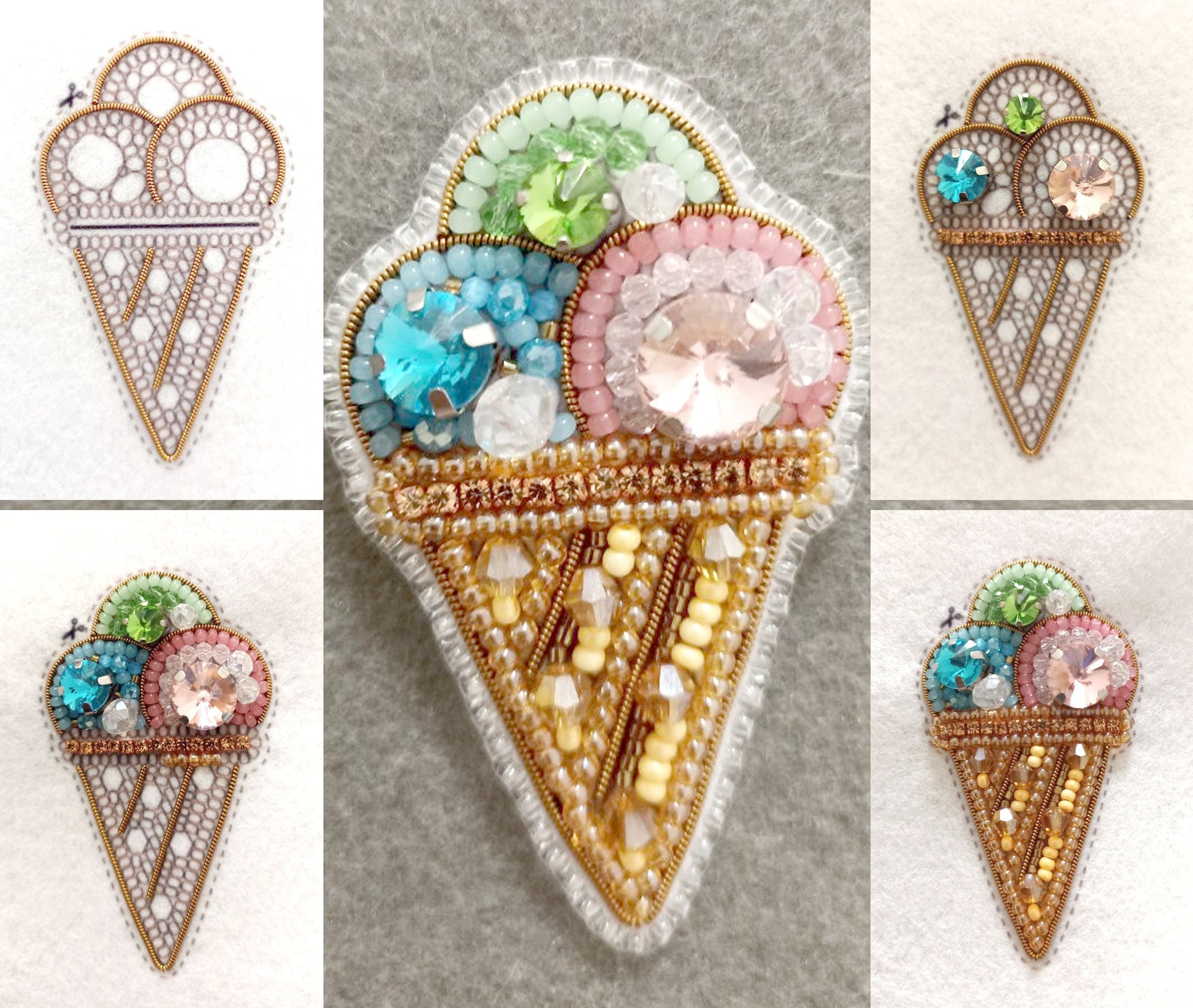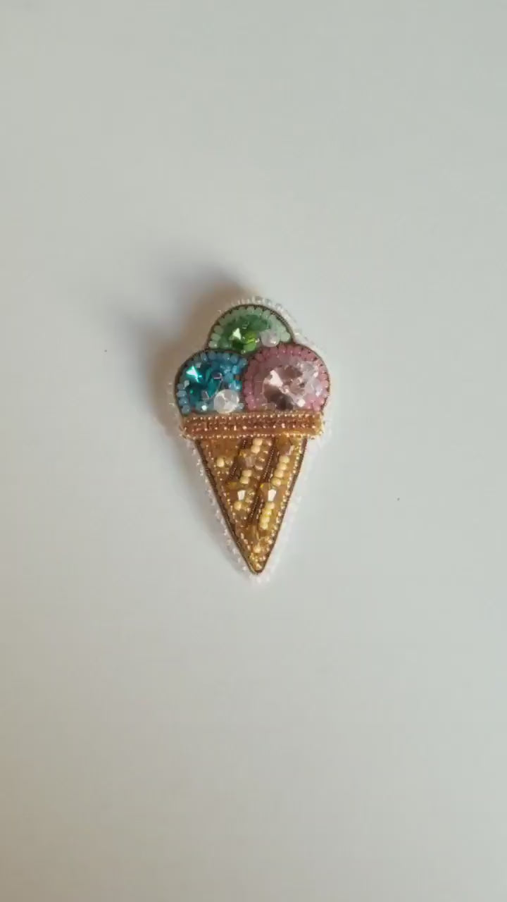 Bead Embroidery Kit Ice Cream Cone. Seed Bead Brooch kit. DIY Craft kit. Food Beading kit. Needlework beading. Handmade Jewelry Making Kit