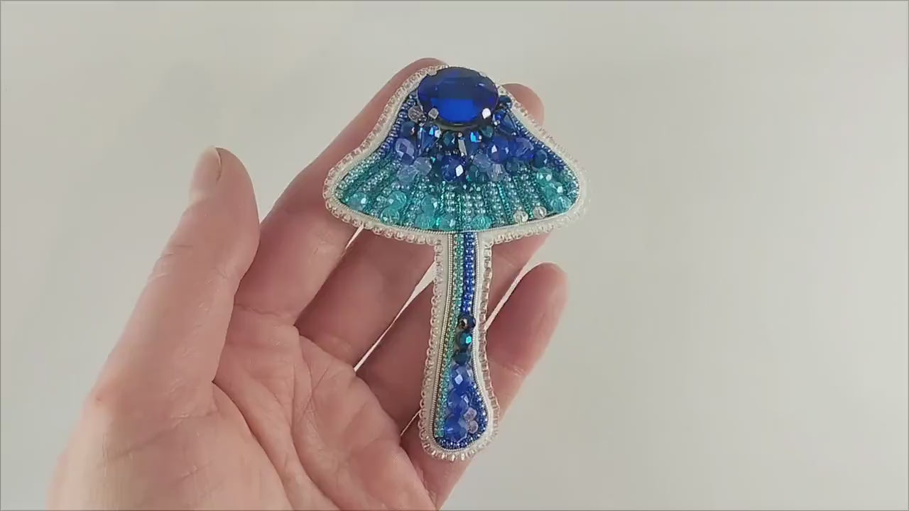 ✔ Beaded brooch kit, DIY beadwork kit, Mushroom embroidery, Blue mushroom brooch, Fantasy bead kit, Beading project kit, DIY craft brooch, Blue mushroom craft, Beadwork DIY project, Embroidery craft kit, Bead embroidery kit, Beading kits, Embroidery kit
