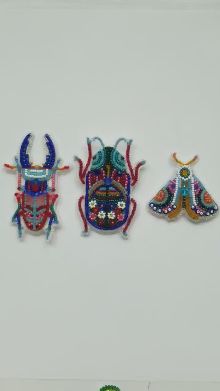 Bead Embroidery Kit - Set of 3 Beetles, DIY Craft kits, Insect Beaded Brooches, Jewelry Making Kits for Adults, Needlework beading