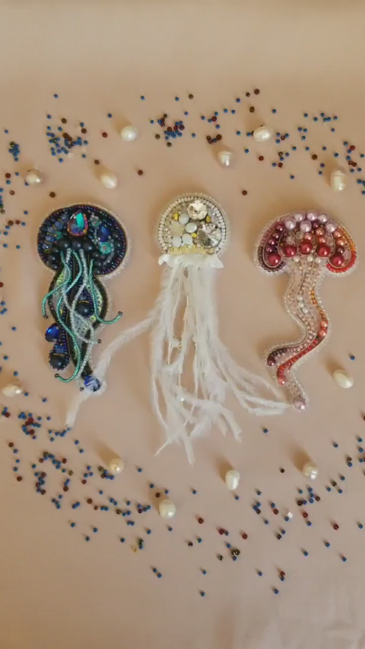 Bead Embroidery Kit - Set of 3 Jellyfishes, DIY Craft kits, Sea Life Beaded Brooches, Jewelry Making Kits for Adults, Needlework beading