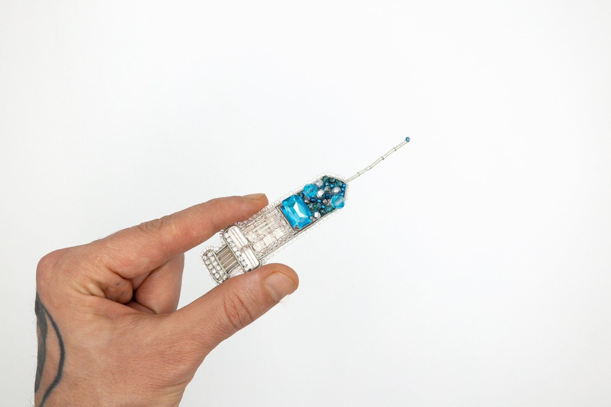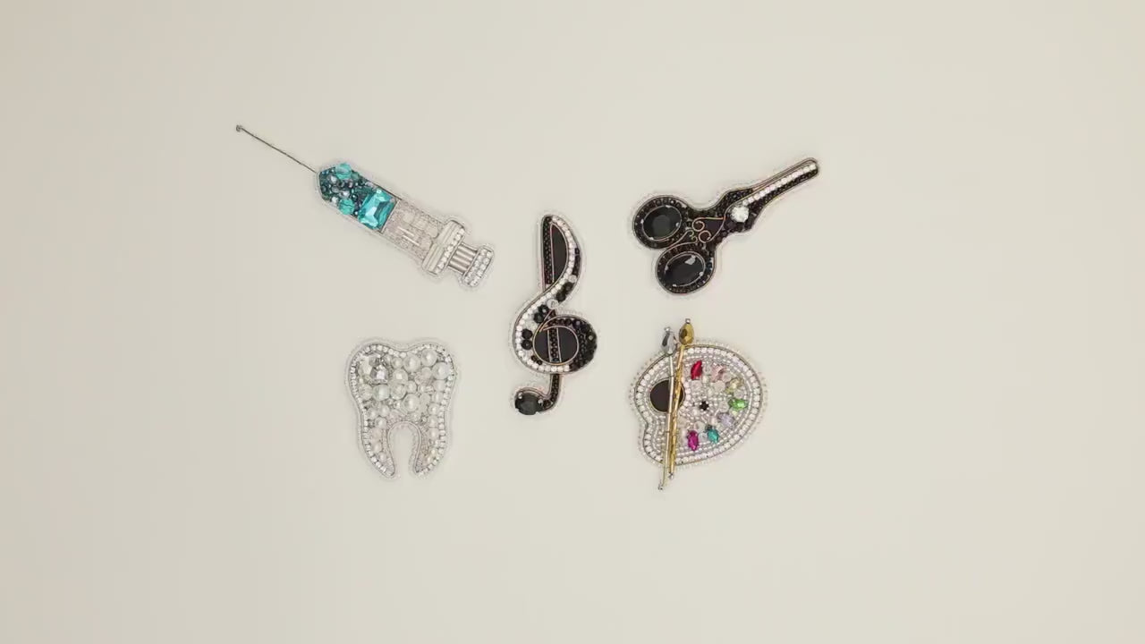 Elevate your professional style with a gorgeous beaded brooch with our hand embroidery kits! Our starter kits will help you create 5 stunning brooch pins – snow white tooth, cool syringe with sparkling blue elixir, stylish black tailor scissors, artist palette, and treble clef. Express yourself with career-themed brooches or surprise a friend, family member, or colleague with a thoughtful and personalized gift!