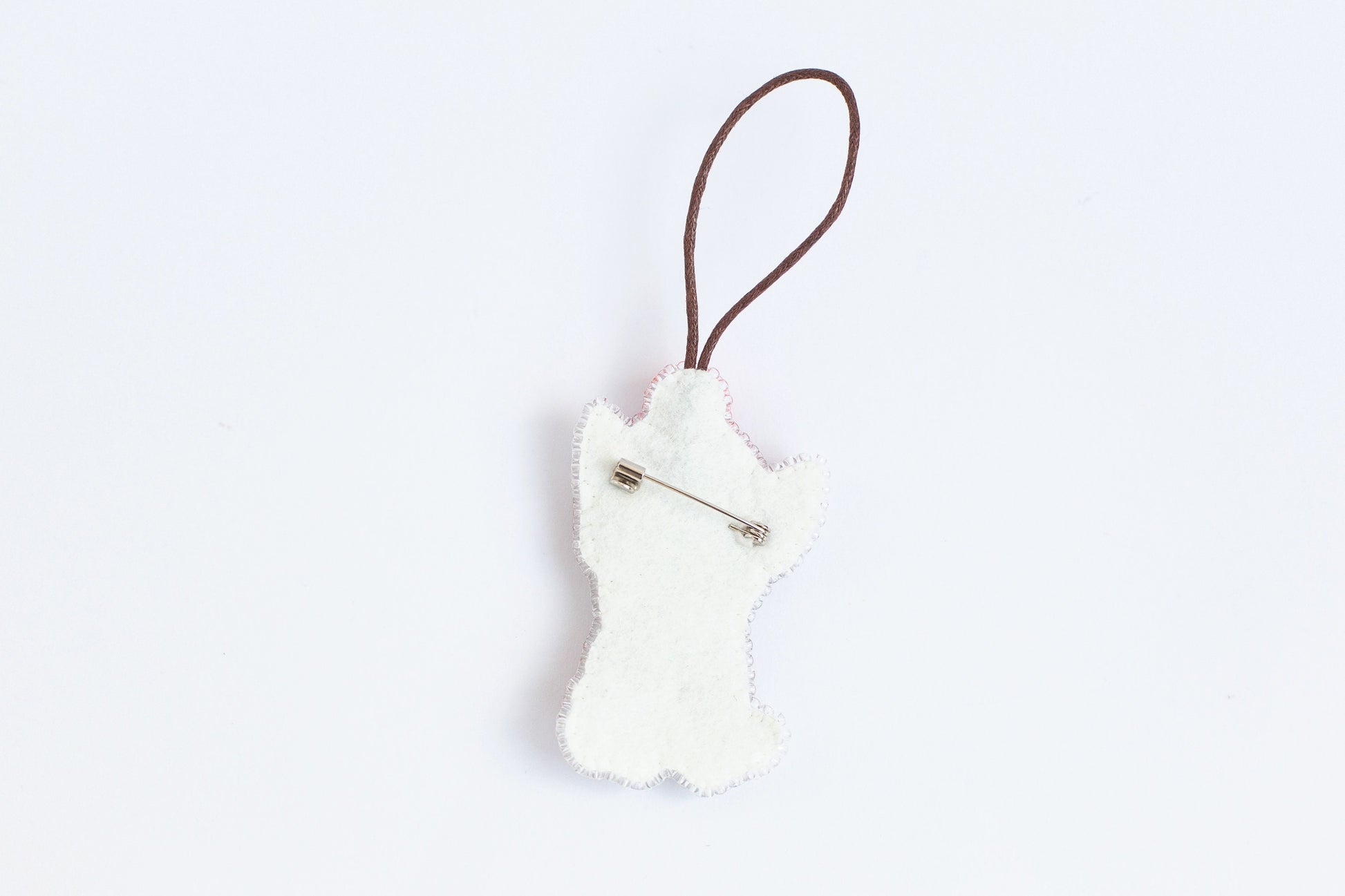 The combination of felt embroidered pin techniques with art glass jewelry components results in a decorative jacket pin that stands out in any collection. Whether worn during holiday celebrations or as an everyday statement piece, this bull terrier pin adds personality and style. Celebrate the season with this animal brooch accessory that blends festive spirit with timeless elegance.