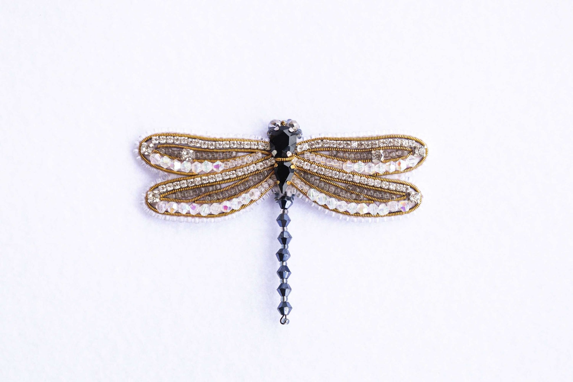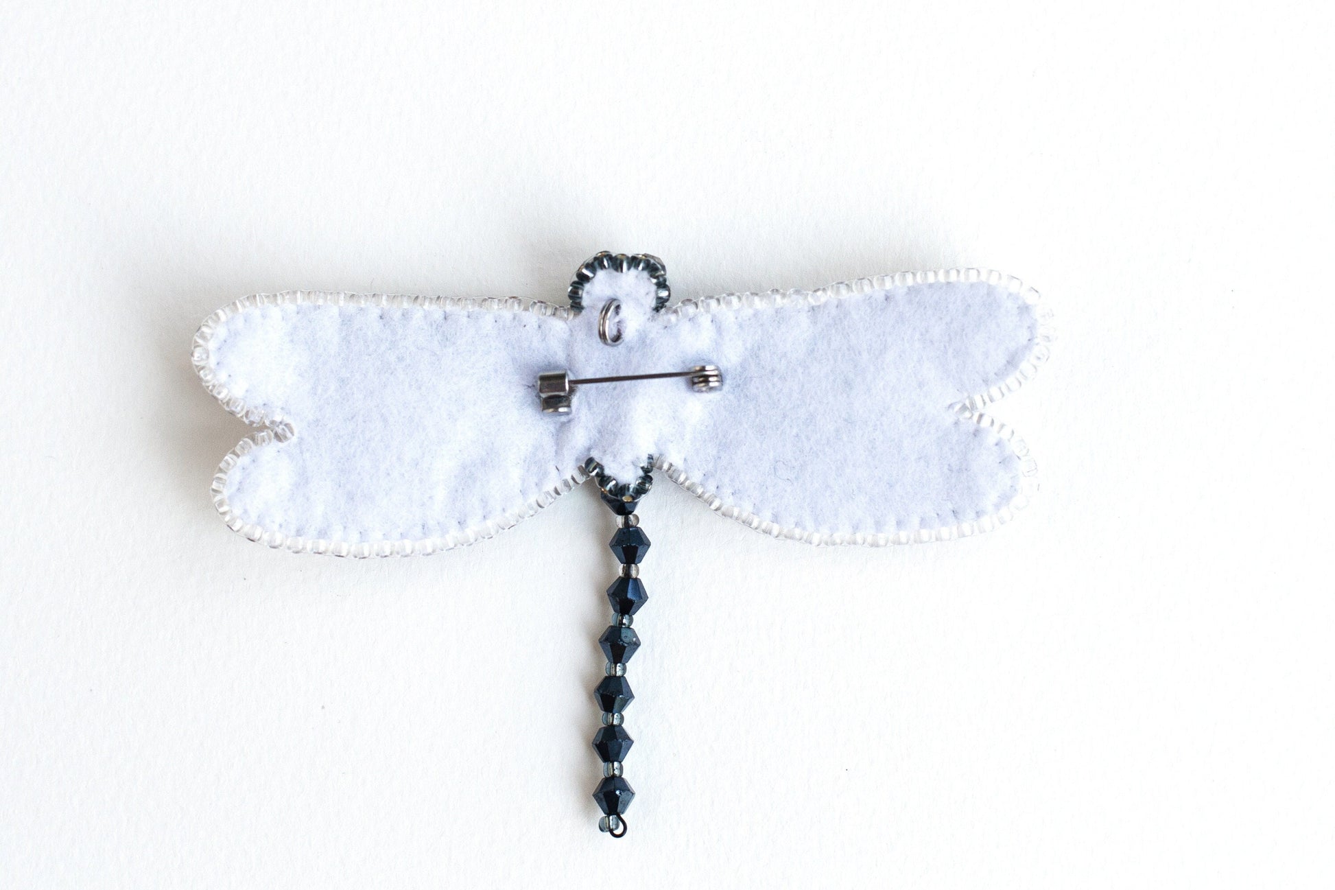 This beaded brooch is a stunning handmade brooch that elevates any outfit with its delicate beadwork and unique design. The Dragonfly Beaded Brooch, Handmade Embroidery Art Glass Pin features intricate embroidery on felt using high-quality Czech beads, bugle beads, and various sizes of seed beads to create a vibrant dragonfly jewelry piece that serves as both a decorative fastening and a fashion accessory. Measuring 3 1/2 x 3 inches (9 x 7 cm), this embroidered pin offers a perfect balance of size and detail, making it an eye-catching addition to jackets, scarves, hats, or bags.