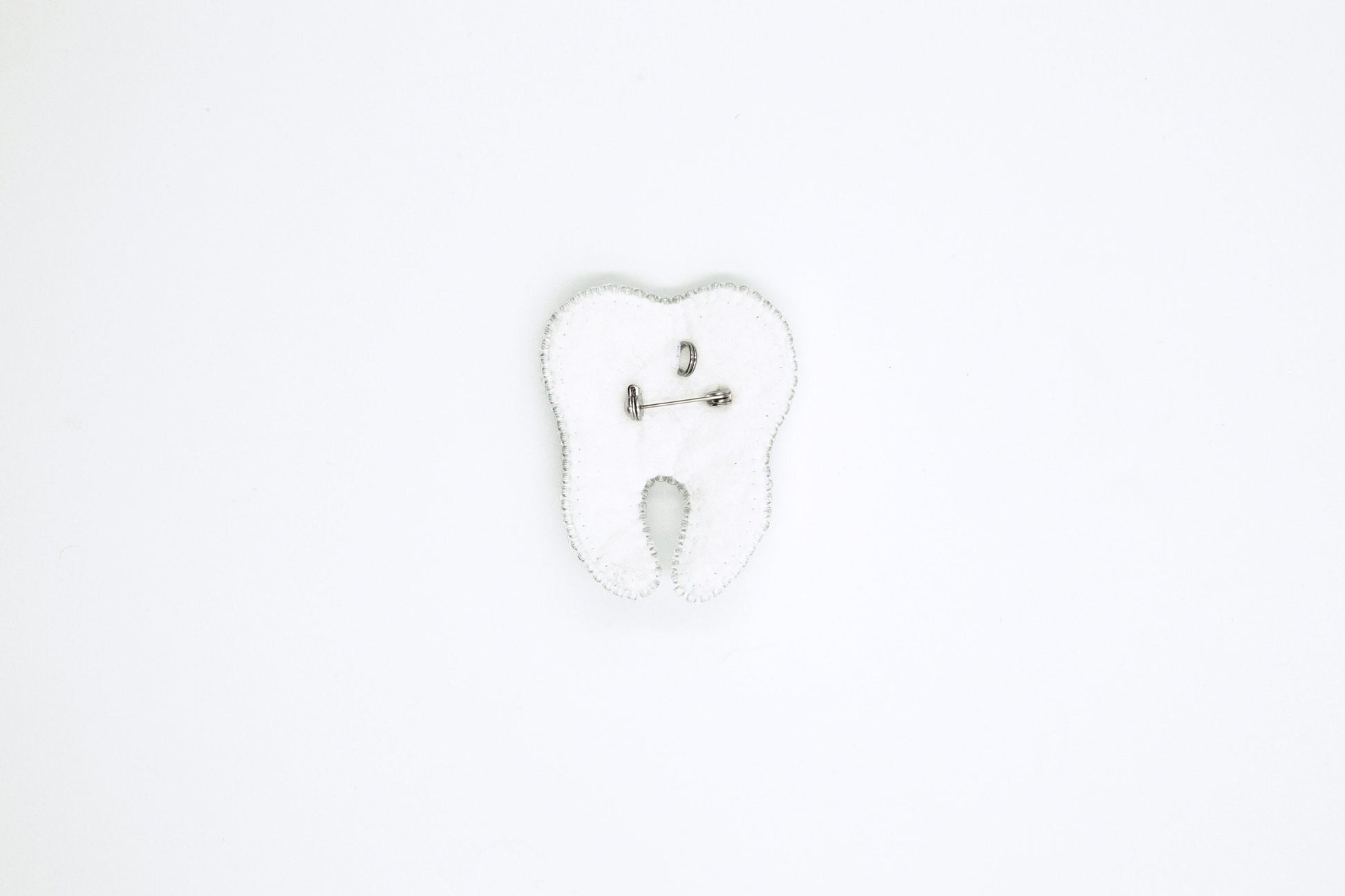 This beaded brooch is a Dentist Tooth Beaded Brooch, Handmade Embroidery Art Glass Pin designed to add a whimsical yet elegant touch to your outfit. Crafted with delicate beadwork design, this handmade embroidery piece features high-quality Czech beads and bugle beads embroidered on felt, creating a unique fashion accessory that stands out. Measuring 1.7 x 2.1 inches (4.5 x 5.4 cm), this embroidered felt brooch is the perfect size to decorate jackets, bags, or hats with ornamental clothing pin charm.