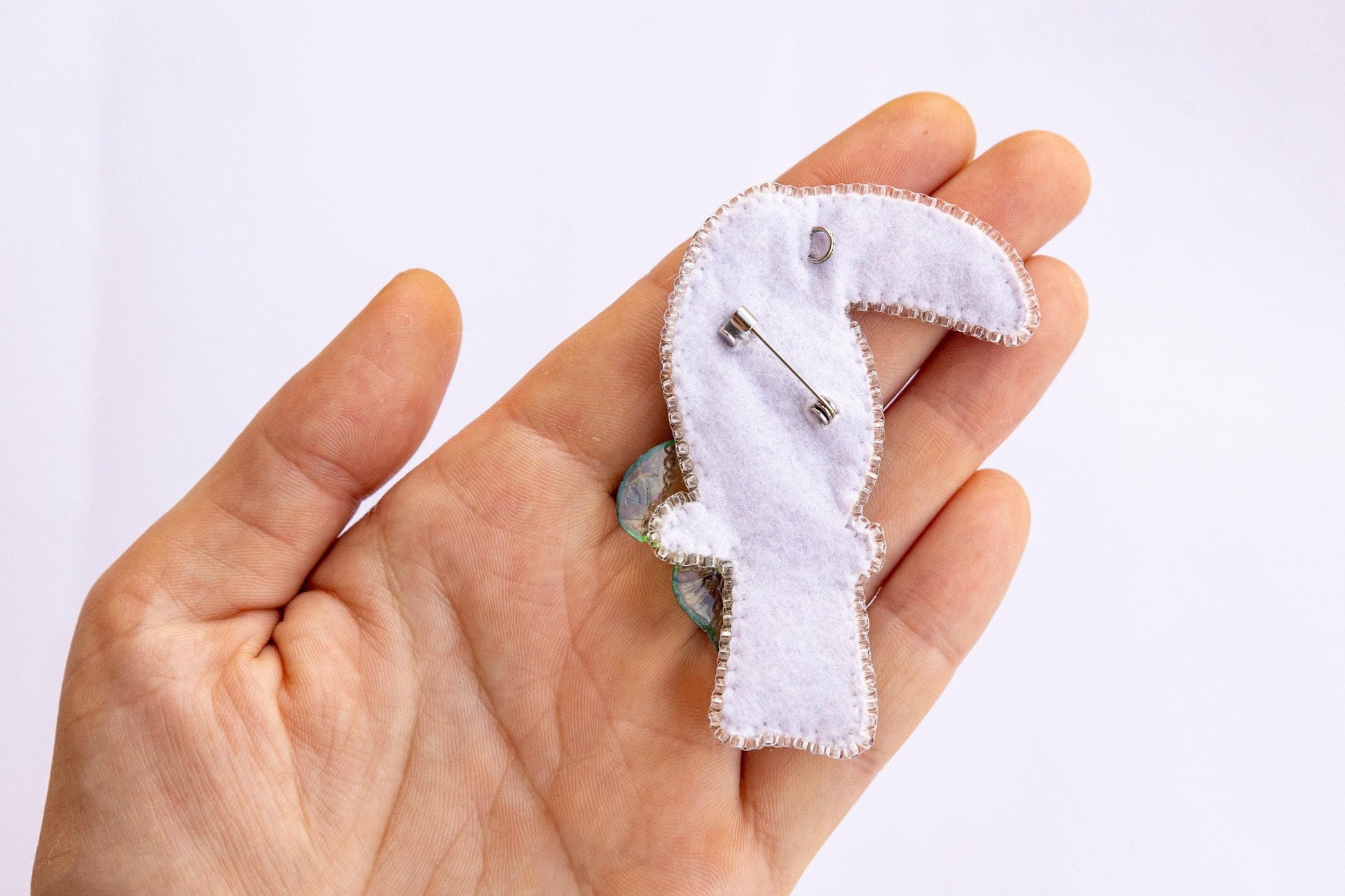 - Handmade brooch with meticulous felt embroidery brooch technique → guarantees one-of-a-kind quality and durability