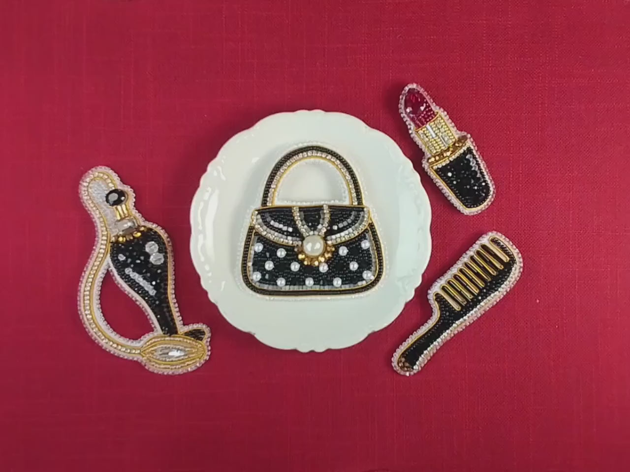 Beaded Brooch Kit Set – Handbag, Lipstick, Perfume & Comb Embroidery Patterns | DIY Jewelry Making Gift for Women