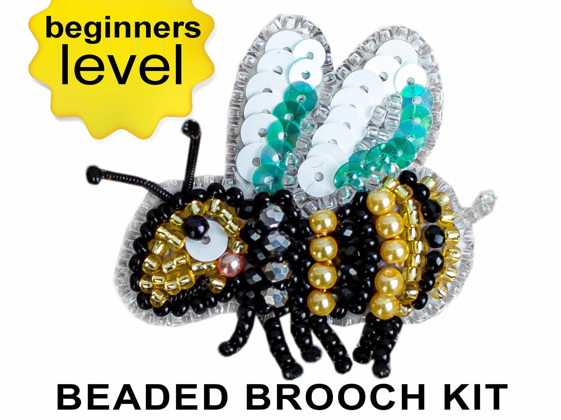Bee Bead embroidery kit. Seed Bead Brooch kit. DIY Craft kit. Beadweaving Kit. Needlework beading. Handmade Jewelry Making Kit