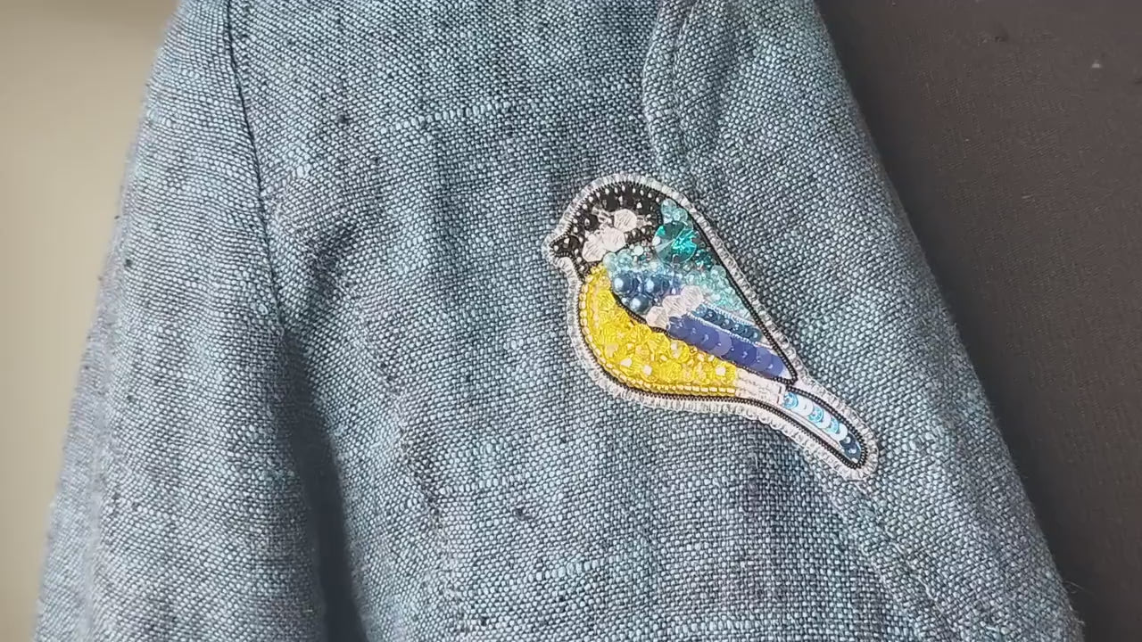 ✔ beaded brooch, jewelry making, bird embroidery, songbird brooch kit, blue yellow pin, diy craft project, handmade bird gift, nature design pin, summer accessory, small bird kit, beginner beading, glory to ukraine, creative jewelry