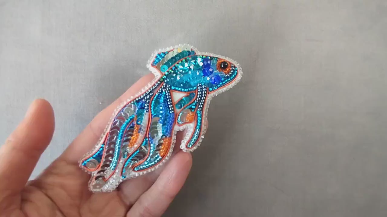 ✔ Blue Beaded Veiltail Brooch Kit | DIY Craft for Jewelry Lovers | Flowing Tail Fish Embroidery with Ocean-Inspired Sparkle