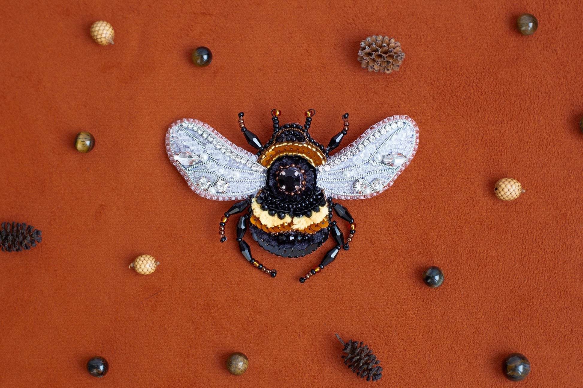 Try our DIY craft kit - bead embroidery kit set for making a unique bead brooch kit. Create a stunning bumble bee embroidered brooch with this DIY kit. The kit includes a bead embroidery pattern, detailed instructions, and all the necessary materials to make a beautiful brooch uniquely charming your wardrobe. You can decorate your clothing with a beautiful bumble bee embroidered brooch using the bead embroidery technique. The kit is an excellent DIY gift for anyone who loves bees. Fashionable jewelry pieces from seed beads, sequins, and various glass beads look unforgettable. Making a DIY craft kit of bumblebee brooch with your hands will help you become the owner of genuinely exclusive jewelry pieces. The kit is perfect for bee lovers and makes a great birthday gift for your mom or anyone who loves bees.