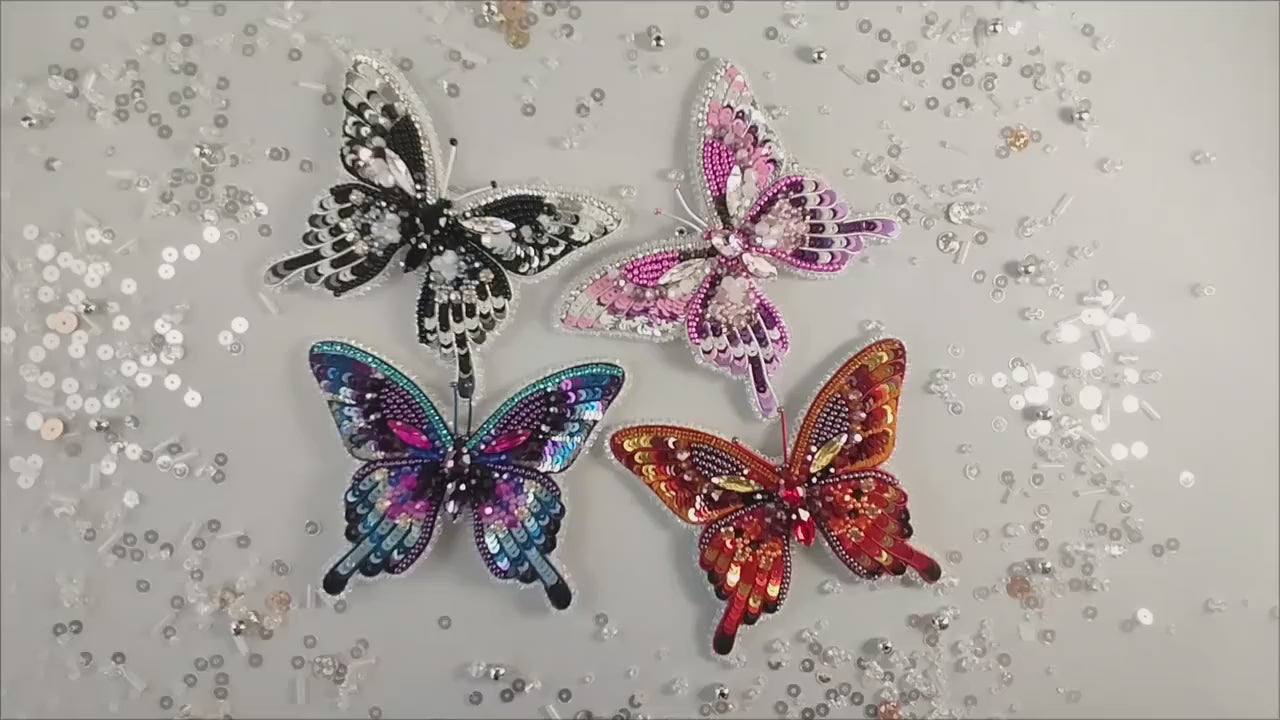 ✔ Butterfly Beaded Brooch Embroidery Kit with Beads and Crystals | DIY Jewelry Making set of 4 New colors Beading