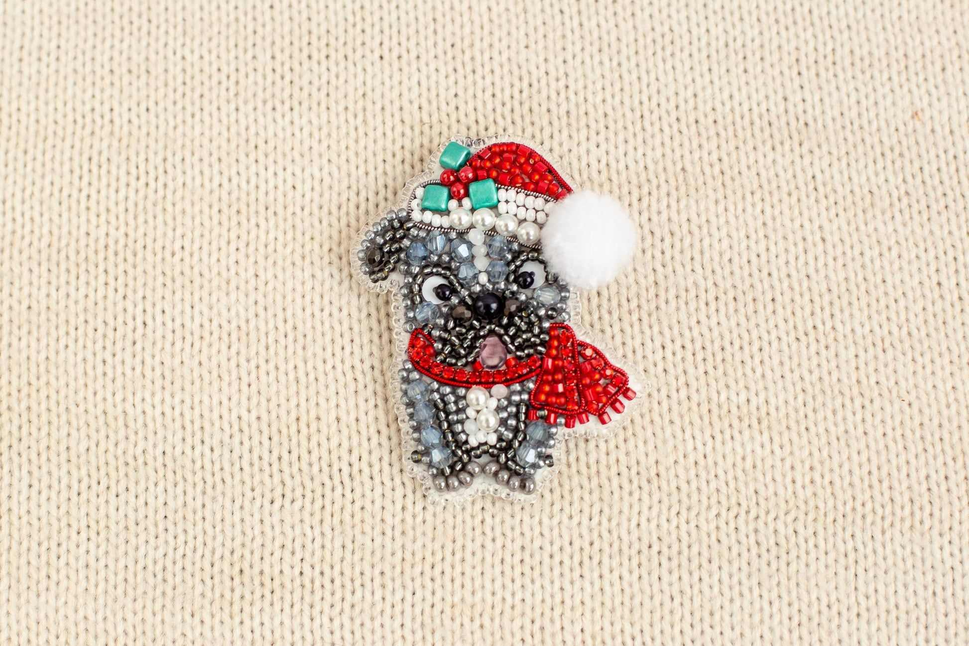 Try our DIY craft kit - bead embroidery kit set for making a unique bead brooch kit. Our online store of bead embroidery goods offers a series of sets for creating stylish accessories with rhinestones, sequins, and seed beads. One of these is the jewelry-making kit of a Christmas French Bulldog brooch, which even beginners can create. The kit includes a bead embroidery pattern, detailed instructions, and all the necessary materials. The adorable puppy brooch in a Santa hat will make the perfect do-it-yourself gift for any girl or mom. This cute accessory will look great on a backpack, scarf, or sweater and has always been popular with fashion lovers. With seed beads, you can create modern, original jewelry that looks unique and eye-catching.