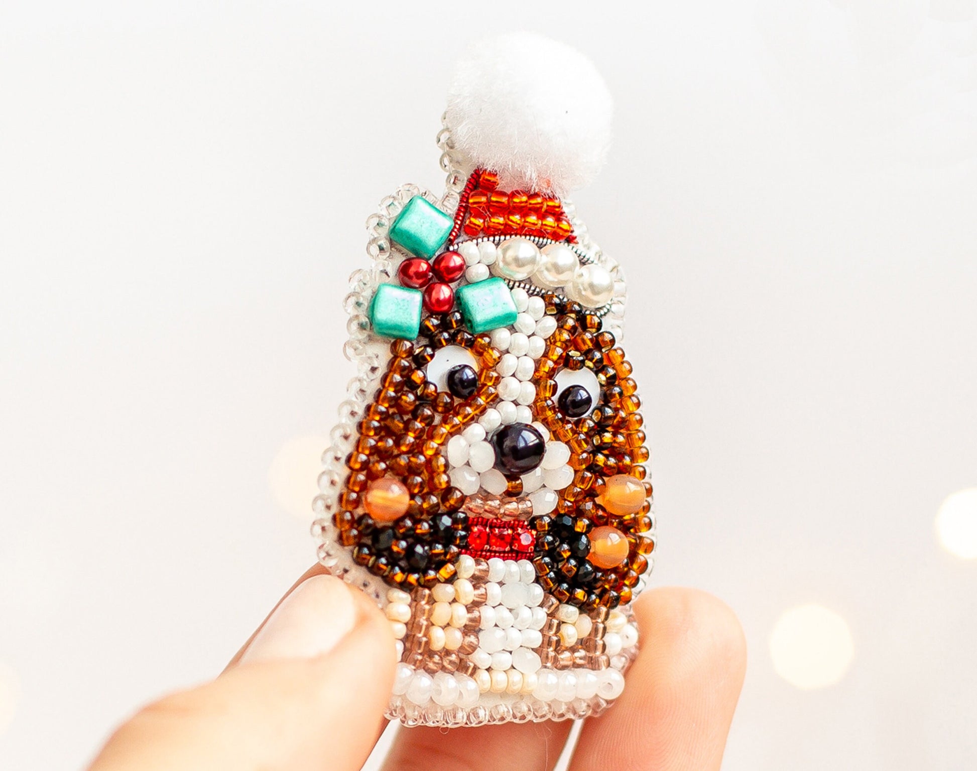 Christmas Dog Bead embroidery kit. Seed Bead Brooch kit. DIY Craft kit. Beadweaving Kit. Needlework beading. Handmade Jewelry Making Kit