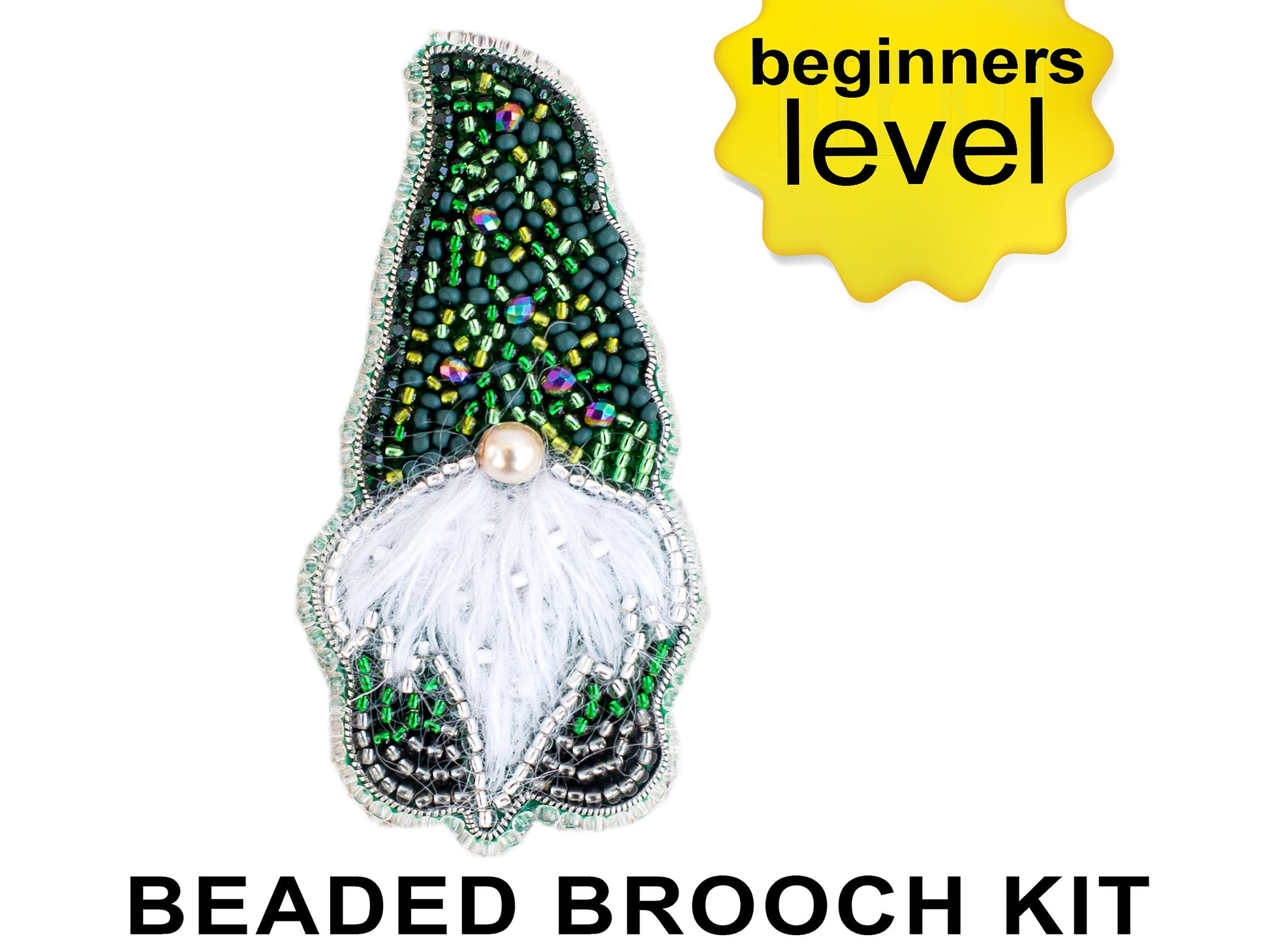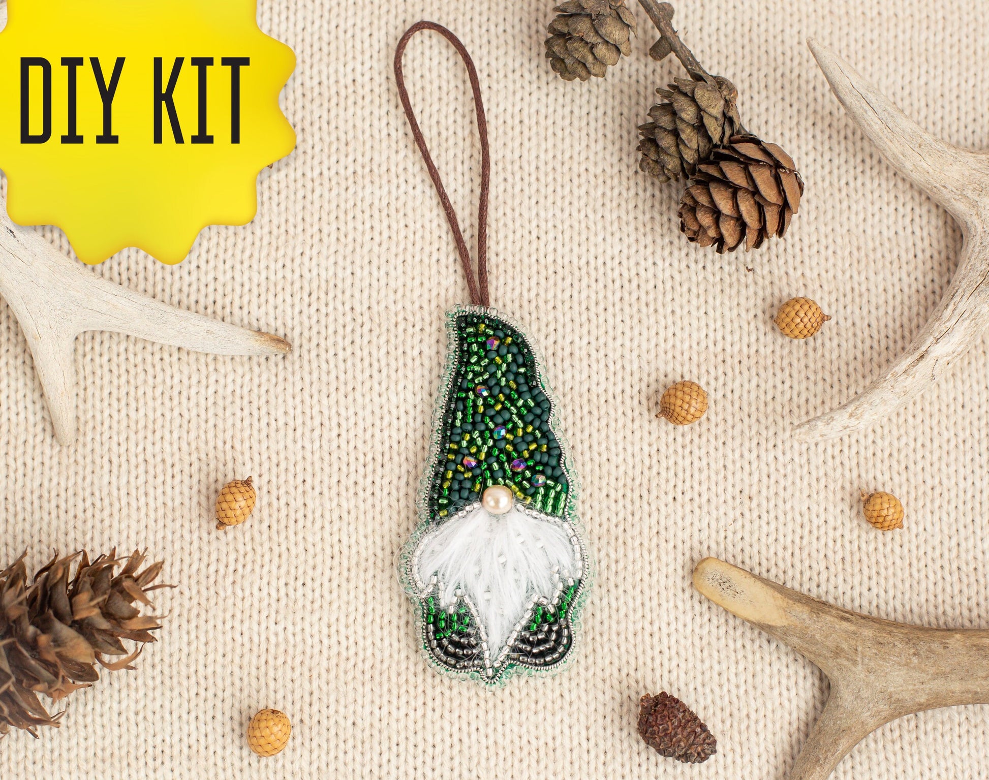 Christmas gnome Bead Embroidery kit. Seed Bead Brooch kit. DIY Craft kit. Beadweaving Kit. Needlework beading. Handmade Jewelry Making Kit