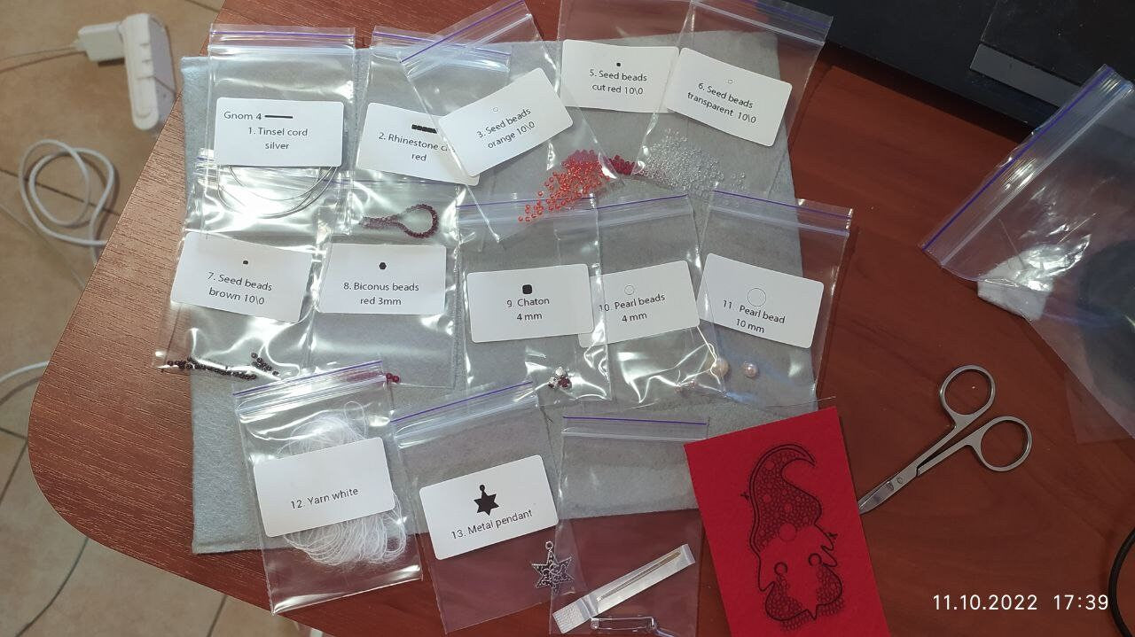 Try our DIY craft kit - bead embroidery kit set for making a unique bead brooch kit. This DIY set allows you to create a charming embroidered Scandinavian gnome brooch, which can also be used as a keychain, pendant, or Christmas ornament. The gnome features the classic elements of a high stocking hat, long white beard, and big round nose, and all are brought to life with bright red bead embroidery. This handmade piece is perfect for those who appreciate embroidered jewelry and beaded brooches. With a loop, this gnome figurine can be hung up as a festive decoration, making it an eye-catching addition to your winter outfit.