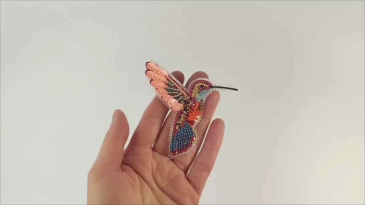 ✔ Coral Hummingbird Beaded Brooch Kit – DIY Beadwork Pattern – Handmade Bird Jewelry
