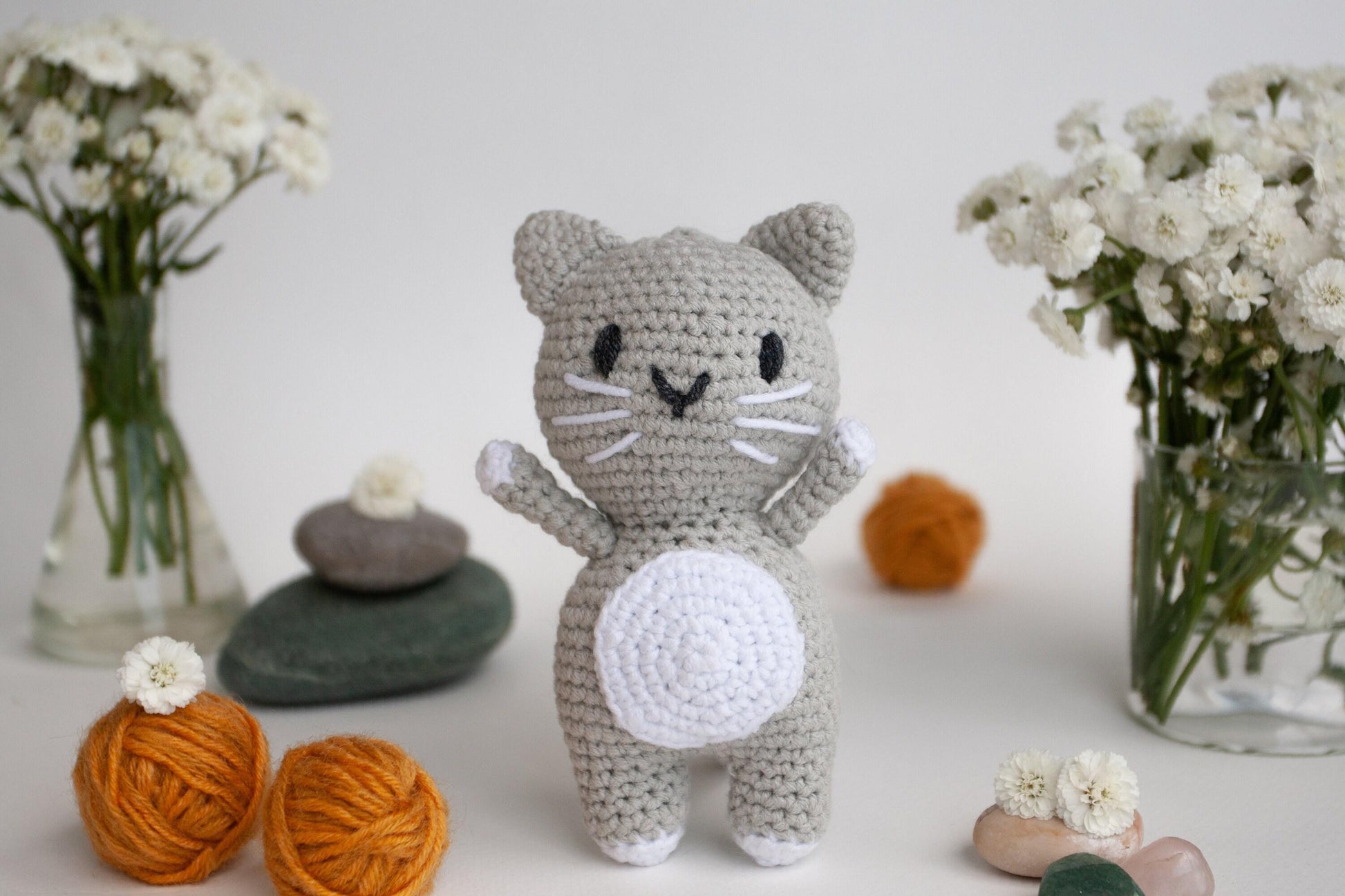 This crochet cat plushie is a soft, small companion designed to bring comfort and joy to kids and adults alike. Handmade with hypoallergenic soft yarn and filled with high-quality hollowfiber, this stuffed cat toy offers a safe, cuddly experience perfect for baby shower gifts or as a cute cat companion for toddlers. Measuring approximately 6 inches tall, this small crochet cat features detailed amigurumi craftsmanship that ensures durability and charm in every stitch.