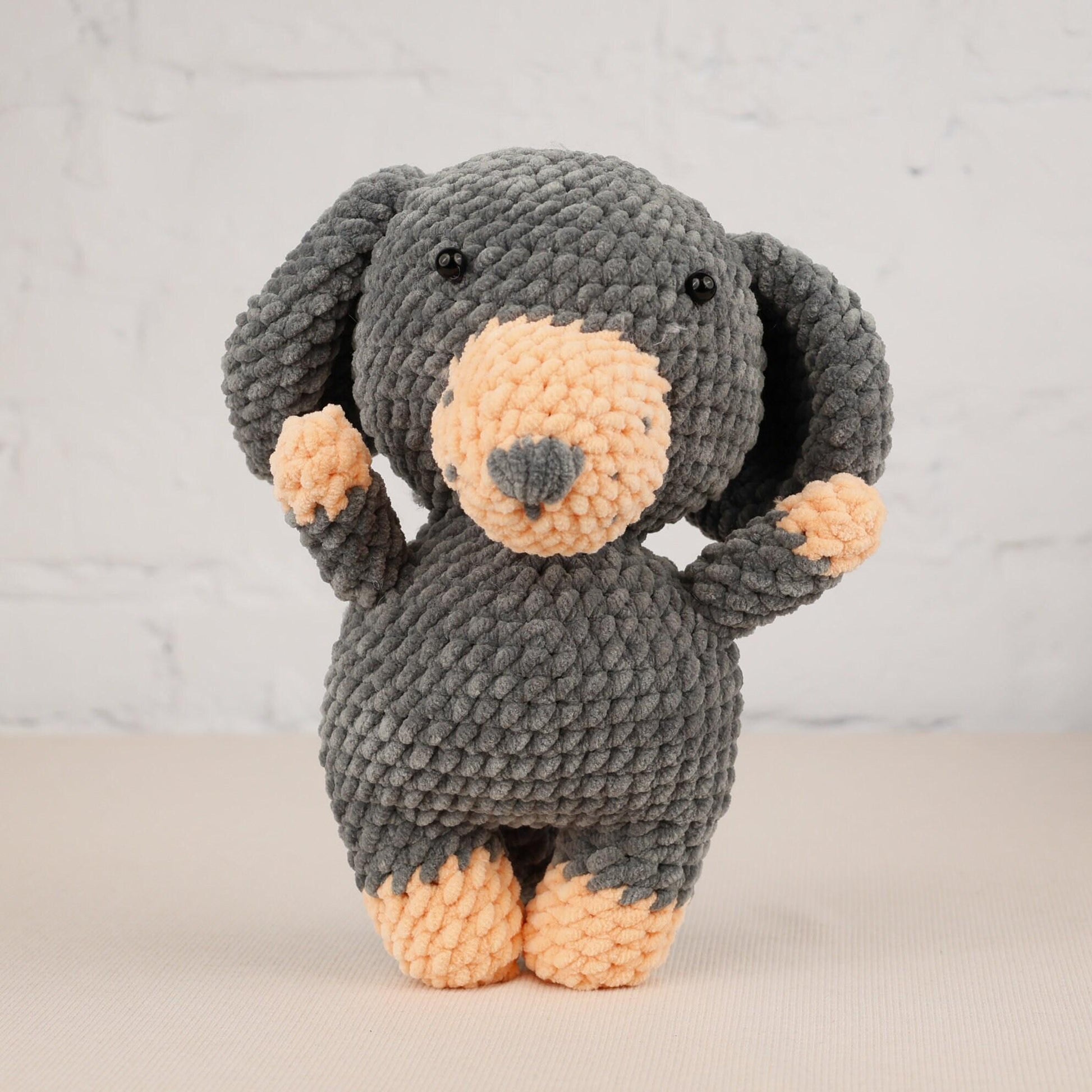 Whether you want to gift a handcrafted dog toy or create your own plush puppy using our beginner crochet kit, this gray crochet dog amigurumi offers both joy and quality. Our crochet patterns are carefully designed for easy following by beginners with basic skills, making it simple to craft your own cute dog plushie at home. The kits include all necessary materials to complete the project without hassle.
