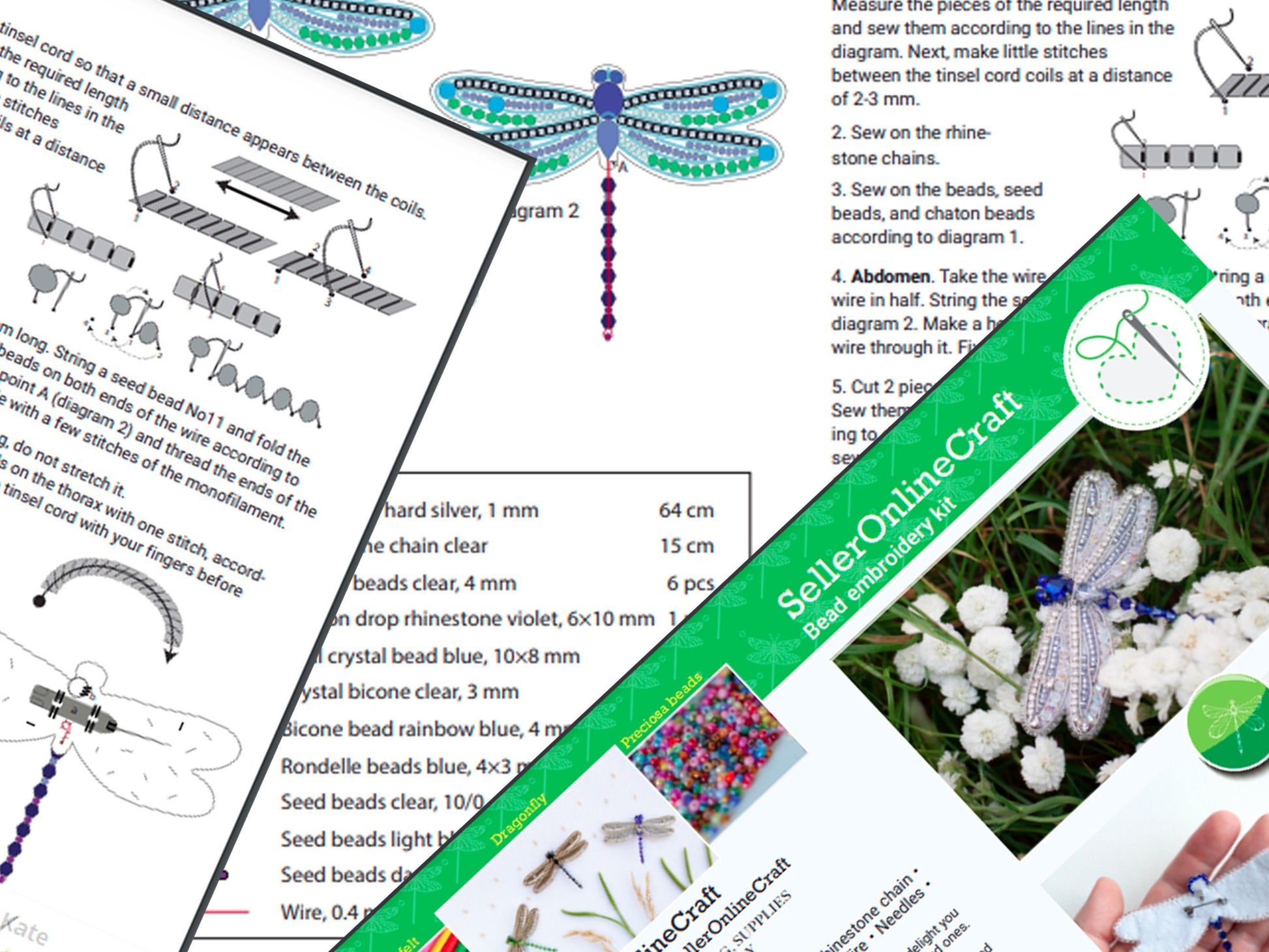 Introducing our Dragonfly embroidery kit. This kit will guide you through crafting stunning beaded dragonfly brooch or pendant adorned with sparkling rhinestones, delicate metallic threads, and beautiful faceted beads. With our beading kits, you can effortlessly create stunning jewelry pieces that stand out.