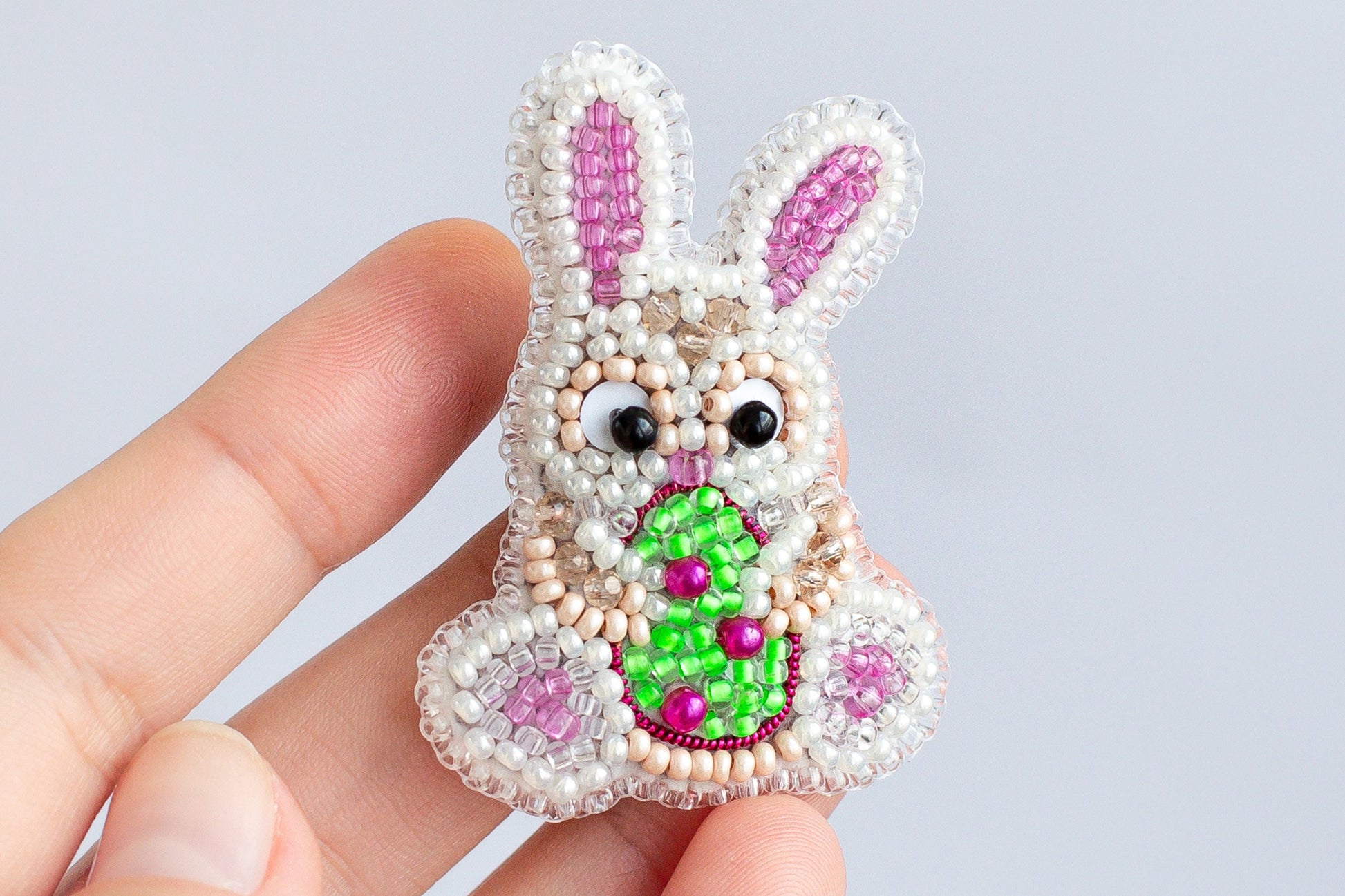 Easter Bunny with Egg Bead embroidery kit. Seed Bead Brooch kit. DIY Craft kit. Beading kit. Needlework beading. Handmade Jewelry Making Kit