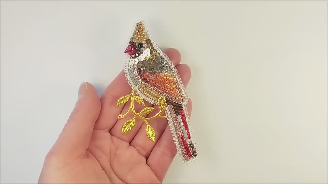 Delicate and stylish, this gray cardinal brooch kit lets you craft a one-of-a-kind accessory using our exclusive design. Ideal for beginners, the set includes clear instructions, printed felt, thread, needle, and premium beads — everything you need to get started. Inspired by forest birds and made to ship fast from the USA, this kit makes a wonderful handmade gift or peaceful personal project.