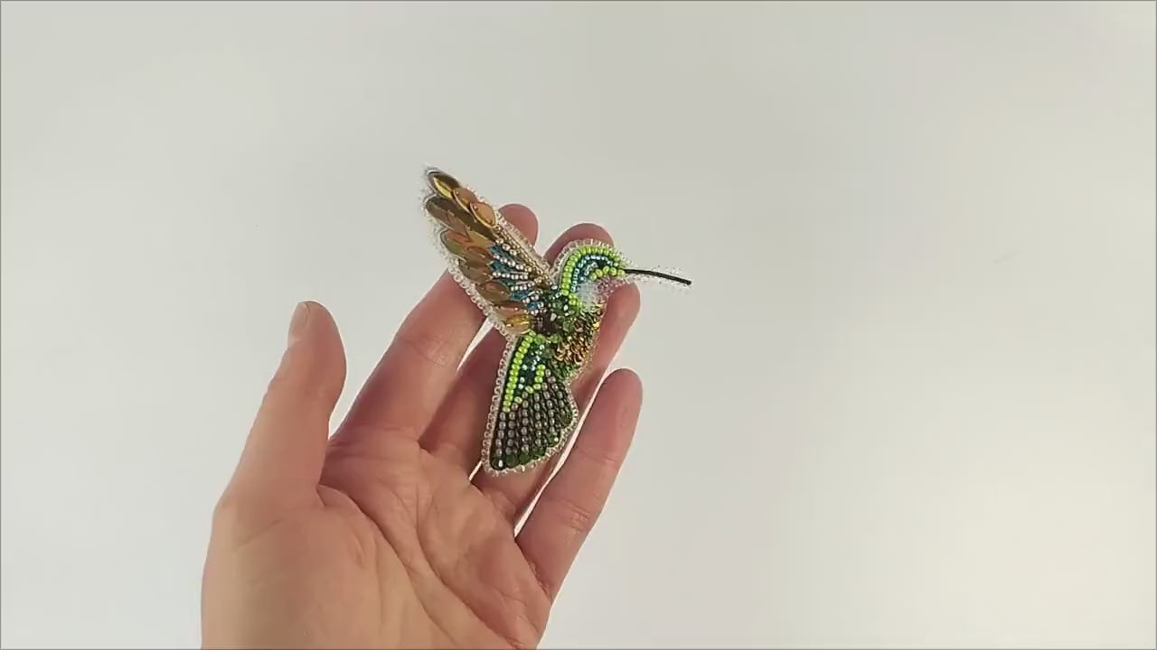 ✔ hummingbird brooch, beaded pin, green bird pin, diy brooch, beadwork kit, embroidery jewelry, nature brooch, handmade bird, diy jewelry kit, beaded art, beading supplies, bird jewelry, bird beading