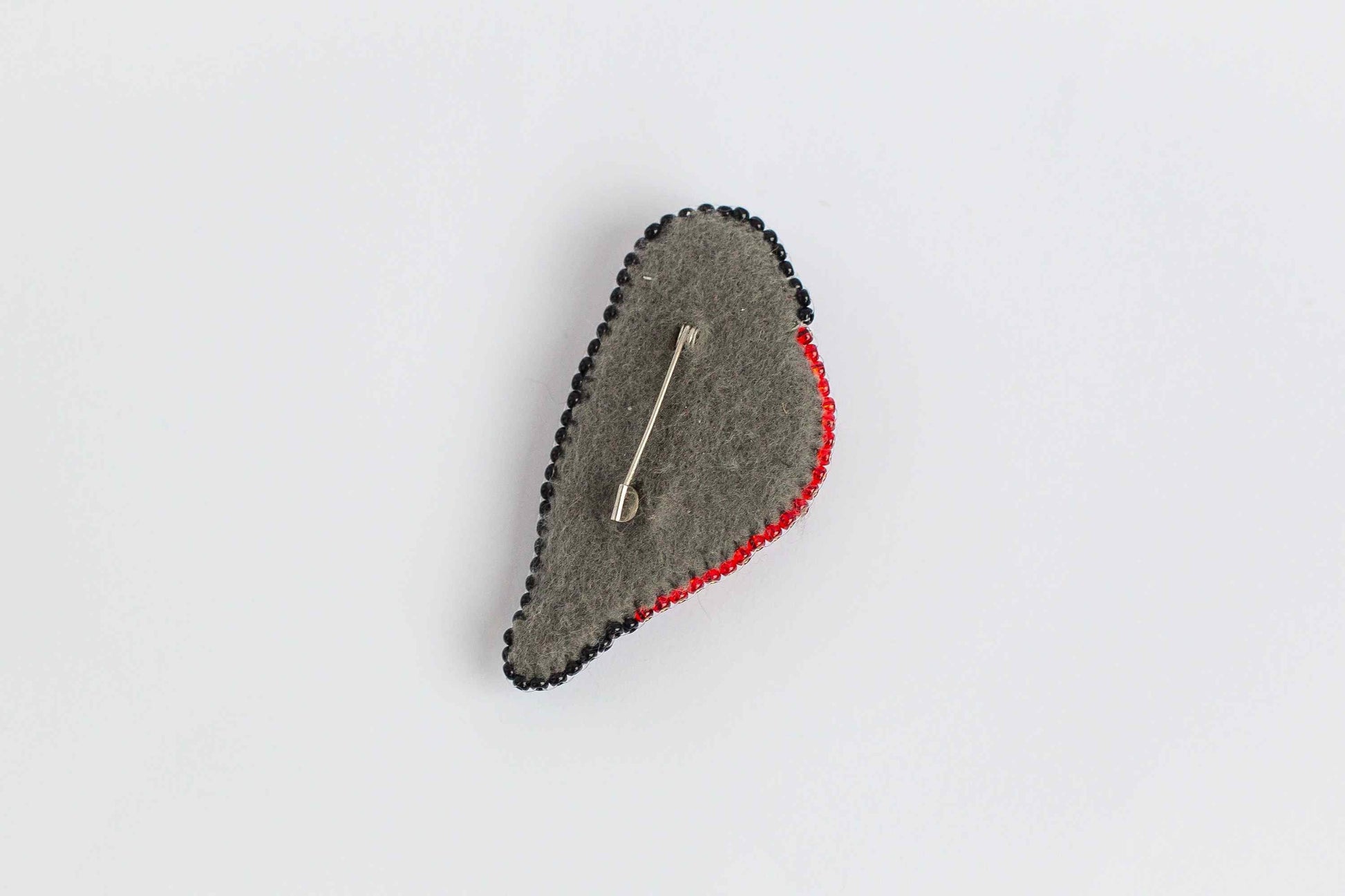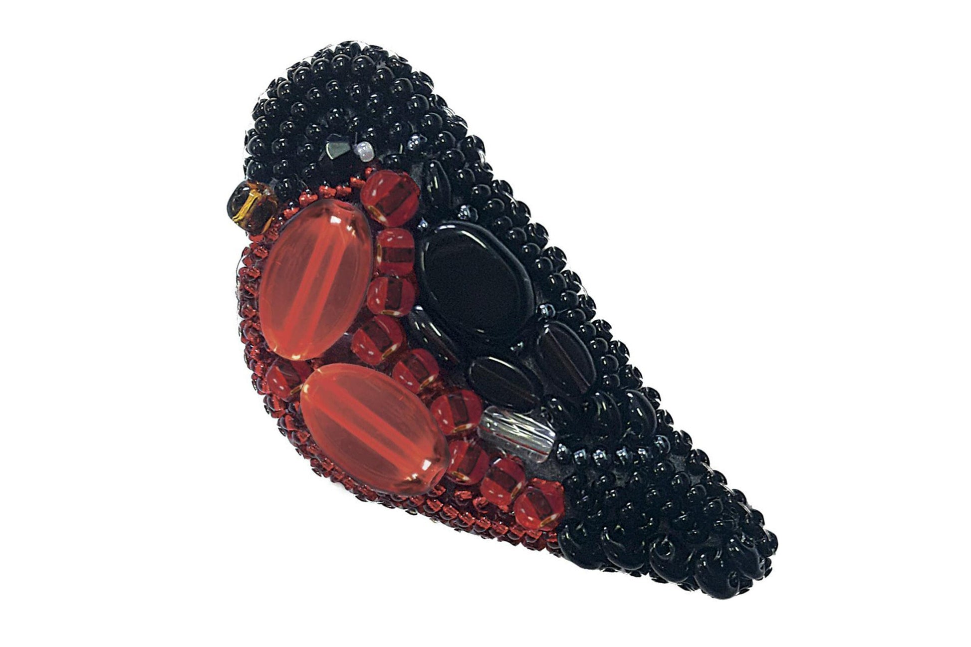 This handmade beaded brooch is a stunning accessory that brings charm and elegance to any outfit. Crafted with care, this handmade beaded brooch features a detailed bullfinch bird design embroidered on felt using high-quality Czech seed beads, bugle beads, and various other beads. Measuring 2 x 2 inches (5 x 4.5 cm), this unique handmade pin adds a whimsical touch while staying securely in place with a sturdy metal pin on the back. Perfect for those who love artisan brooch designs, this decorative jacket pin combines craftsmanship with festive spirit, making it an ideal Christmas brooch gift.