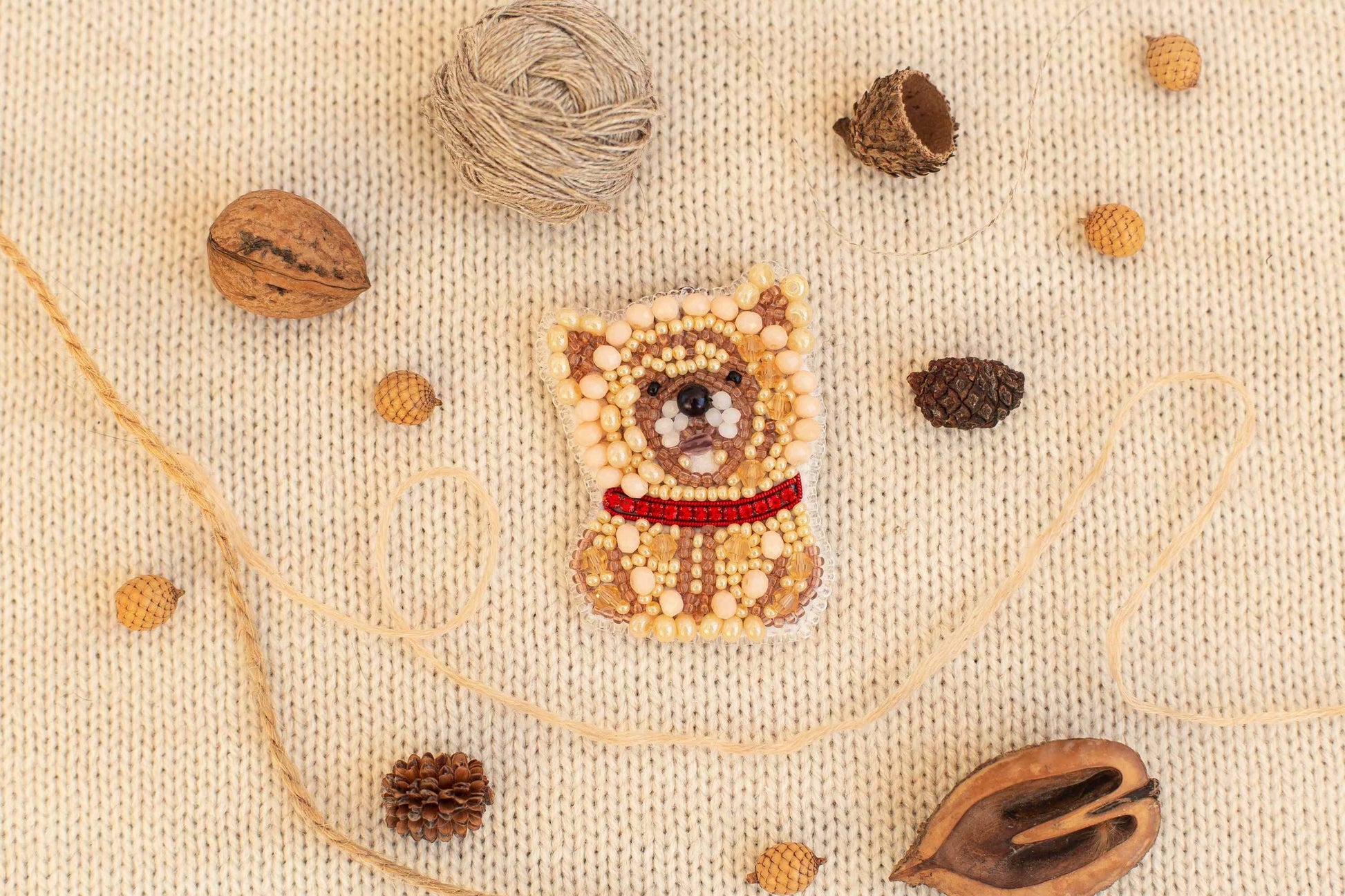 Each seed bead brooch is created with attention to detail, combining various sizes of beads to achieve depth and texture that stand out in any outfit. This embroidered brooch is not only a stylish addition but also an expression of craftsmanship that appeals to anyone who values unique handmade gifts. Whether worn on a lapel, hat, or bag, this dog brooch accessory adds character and elegance.