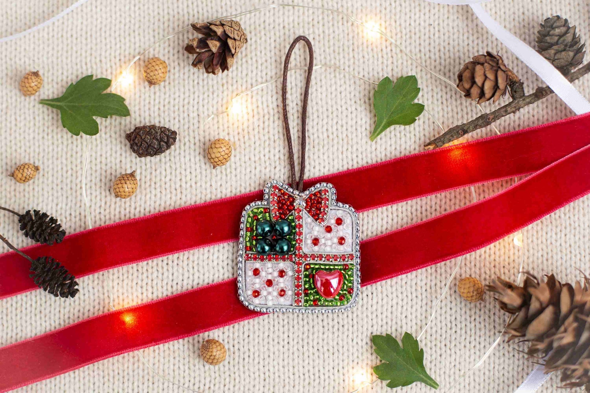 This handmade beaded brooch is a stunning accessory designed to enhance your festive wardrobe with charm and elegance. Crafted with precision, this Christmas brooch features intricate beadwork that transforms any holiday outfit into a statement of style. Measuring 2 x 1 1/2 inches (5 x 4 cm), the embroidered pin uses high-quality Czech seed beads, bugle beads, and art glass embellishments to create a delicate beadwork design that captures the spirit of the season.