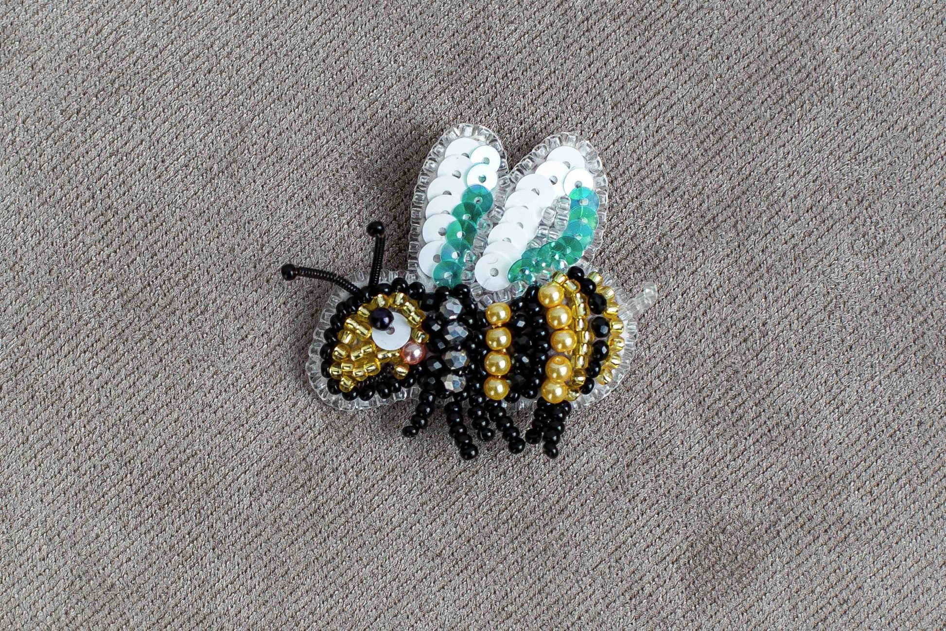This handmade beaded brooch is a delicate and charming accessory crafted to elevate any outfit with a touch of whimsy and elegance. The Bee Beaded Brooch features fine beadwork brooch artistry, embroidered on soft felt using high-quality Czech glass beads and bugle beads, creating a unique embroidery pin that captures the intricate beauty of bee jewelry accessory design. Measuring 1 1/2 x 1 1/2 inches (4 x 4 cm), this seed bead pin is perfect for adding a subtle yet eye-catching detail to your wardrobe.