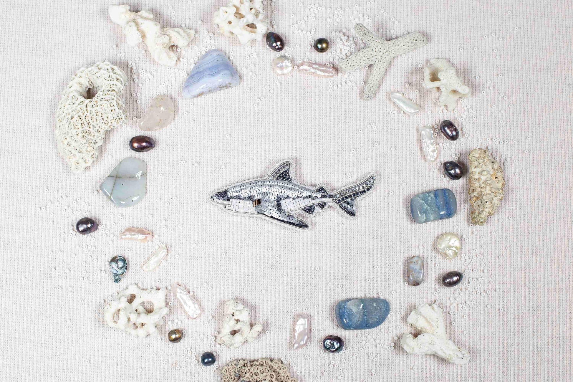 - Embroidered brooch design using high-quality Czech beads for lasting shine