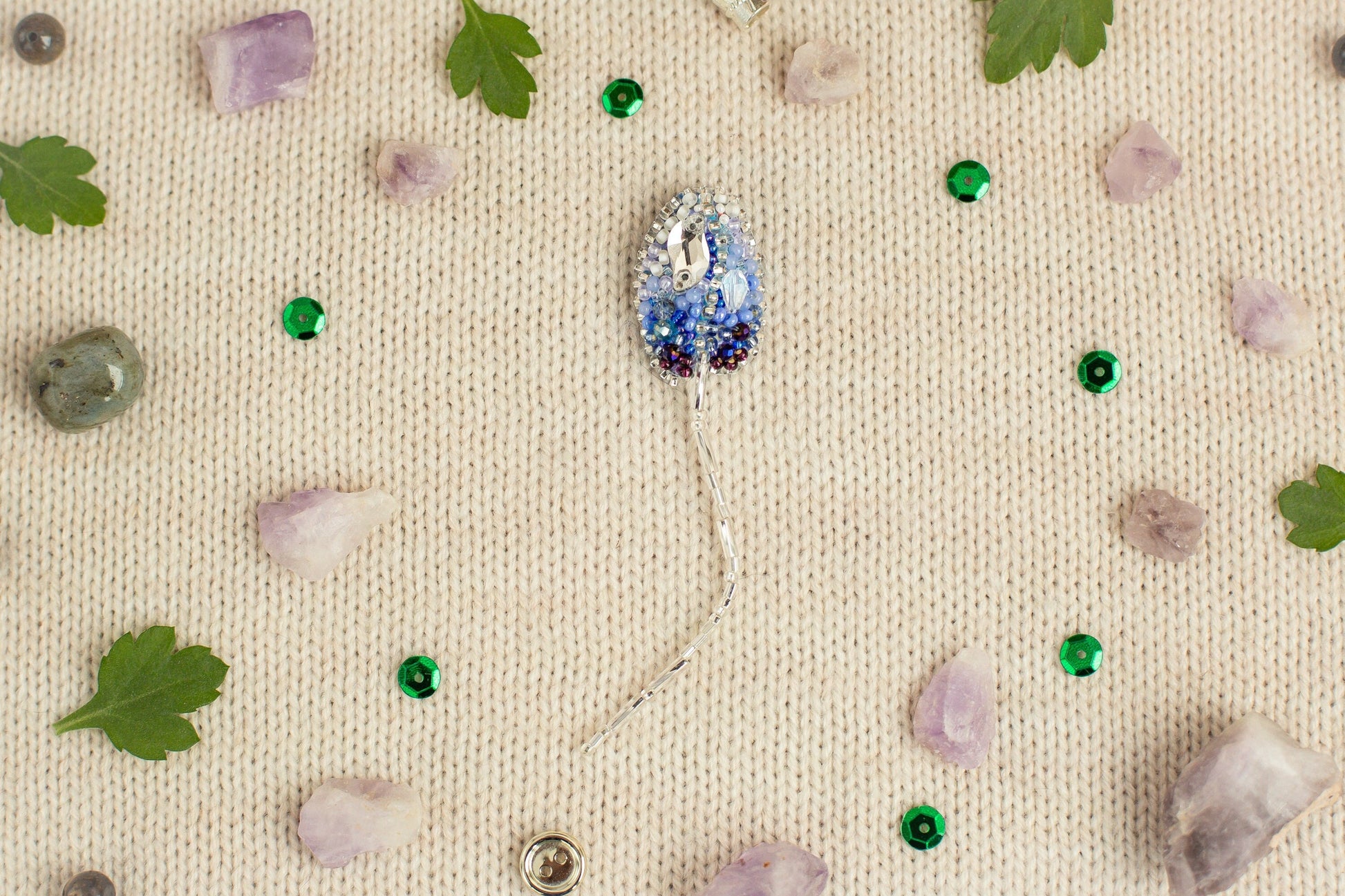 - Handmade beaded brooch showcasing delicate beadwork design