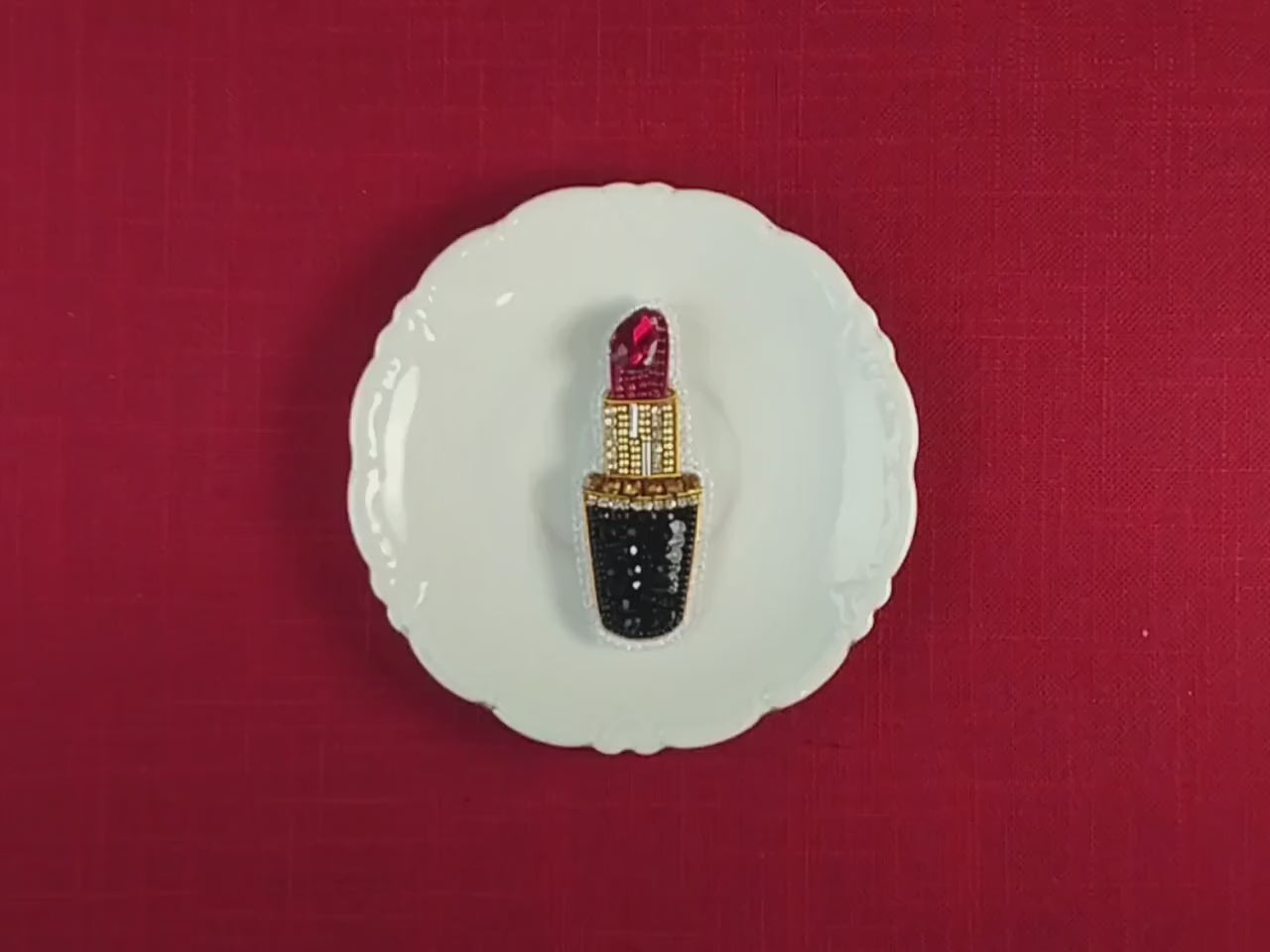 - Handmade lipstick brooch crafted with high-quality Czech beads and bugle beads → ensures durability and vibrant colors