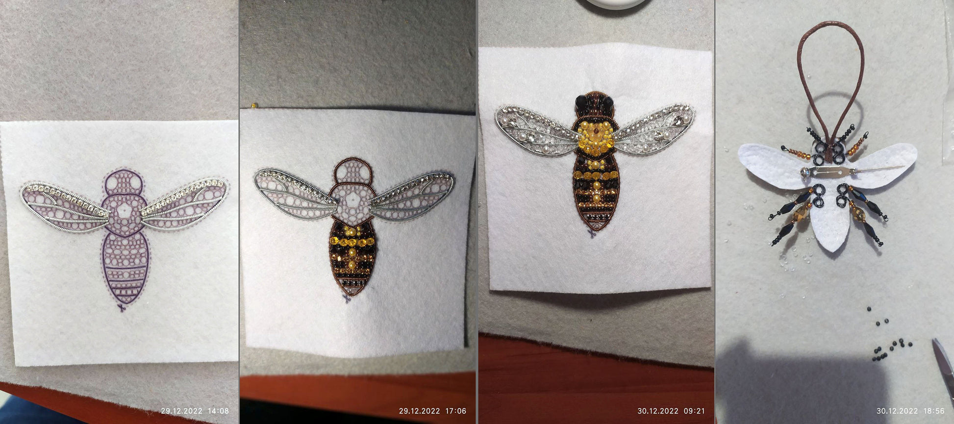 We've created several unique sets for insect enthusiasts: luxurious bees, wasps, bumblebees, and a series of bright and charismatic beetles. Choose a set that suits your preferences from our shop, or embroider an entire swarm of insects to add to your collection.